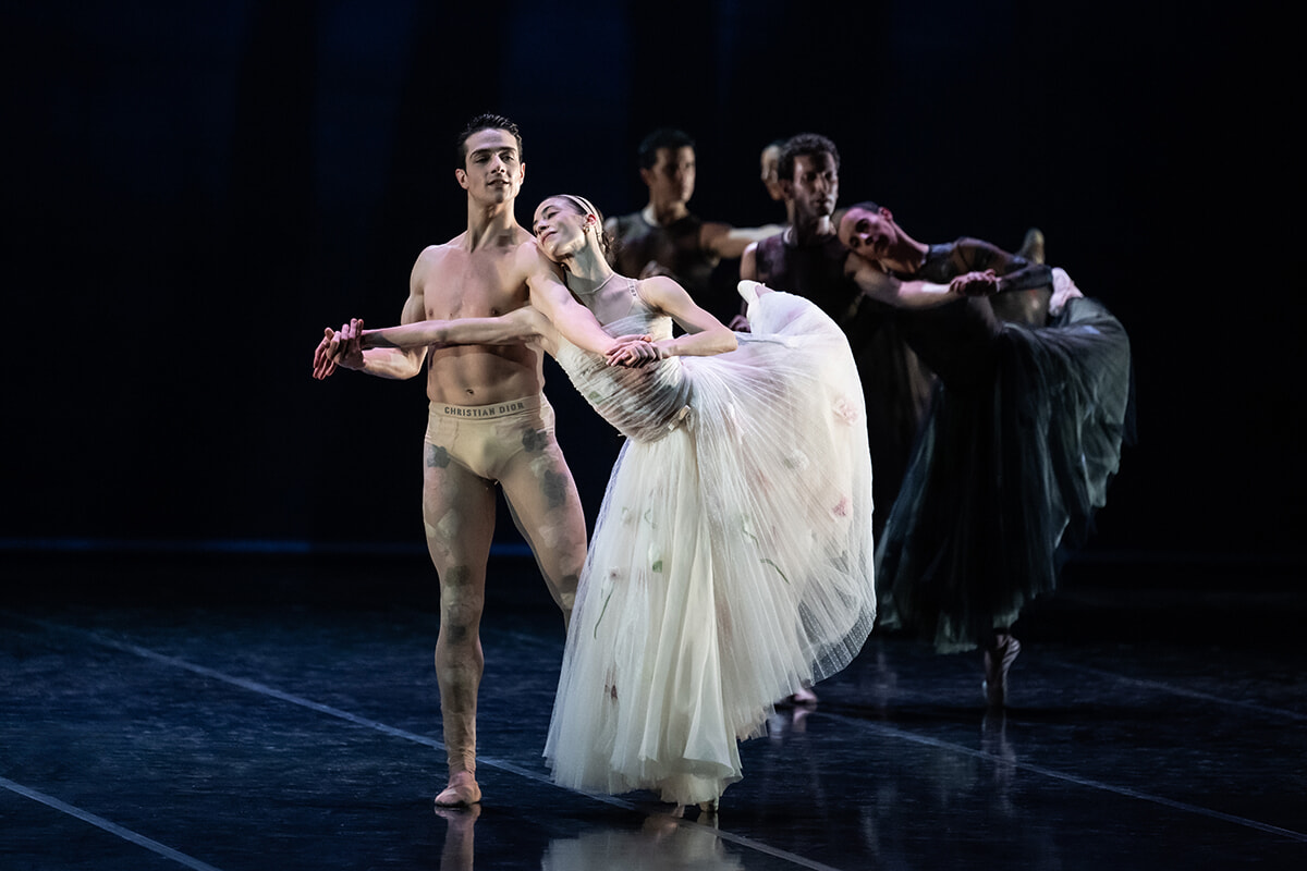 ローマ歌劇場バレエ団との2度目のコラボレーションは、2022年にアンジュラン・プレルジョカージュが創作した『Nuit Romaine(ローマの夜)』のため。エレオノーラが夜の女神役で、フリーデマン・フォーゲルが生命を夜に得る半裸の彫像だった。この作品は国際ダンスデー40周年を記念して在イタリア・フランス大使館であるローマの美しい建築物であるパラッツォ・ファルネーゼを舞台に踊られた映像作品で、プレルジョカージュは監督も務めている。4月26~28日、この作品がパリのパレ・デ・コングレで、舞台作品として初めてローマ歌劇場バレエ団によって踊られた。この公演では”夜”シリーズ第3弾の『Nuit dansée(舞踏の夜)』もパリで初上演。ジョルジオ・マンチーニによるモダンタッチの力強さとクラシックバレエのポエジーが結びついたオーガニックな振り付けで、音楽はフィリップ・グラスのピアノ・コンチェルトが用いられていた。ダンスとクチュールという人間の身体あって成立するふたつのアートが生み出すシナジーが、ステージ上に開花した宵だった。ちなみにジョルジョ・マンチーニは日本で開催された「ル・グラン・ガラ」で踊られた『トリスタンとイゾルデ』、『マリア・カラス~踊る歌声~』の創作者である。