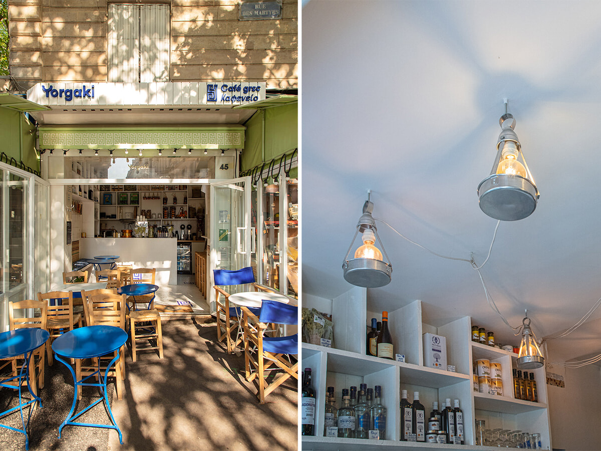 世界的に有名なギリシャ出身のグラフィックデザイナーのYorgo Tloupas(ヨルゴ・トゥルパス)。スイーツでおなじみのマルティール通りに、彼はグリークカフェのYorgaki(ヨルガキ)を2019年にオープンした。とても小さな店内、その前には少しばかり傾斜した通りに設けられたミニテラス……居心地がいいとは言い難いけれど、パリでギリシャ気分を味わう人々で毎日満席だ。
