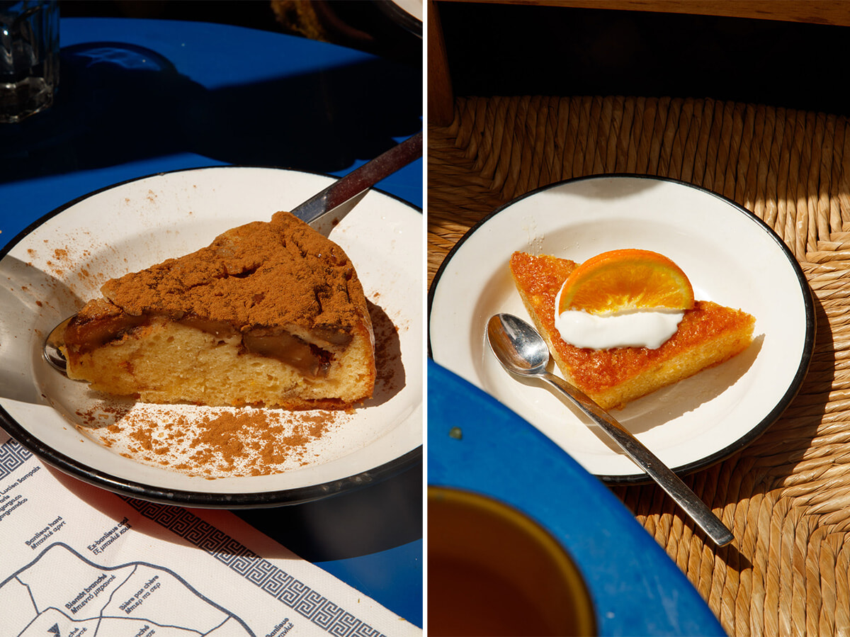 甘党の朝食にアップルタルト(左/6.5ユーロ)やオレンジケーキ(6ユーロ)。午後のおやつタイムにも良さそう! photos: Emmanuelle Lubaki ©Yorgo&co