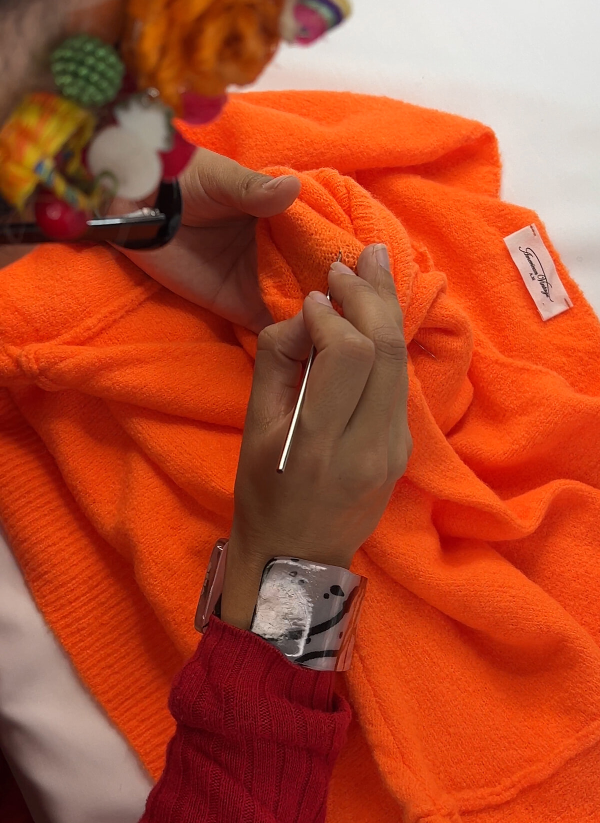 アップサイクルを掲げるティリはパリの2店舗を展開するほか、500人の登録職人を擁するプラットフォームでもある。オンラインでの服や靴の修繕サービスにもリペアボーナスが適用される。写真はセーターの穴あき補修。