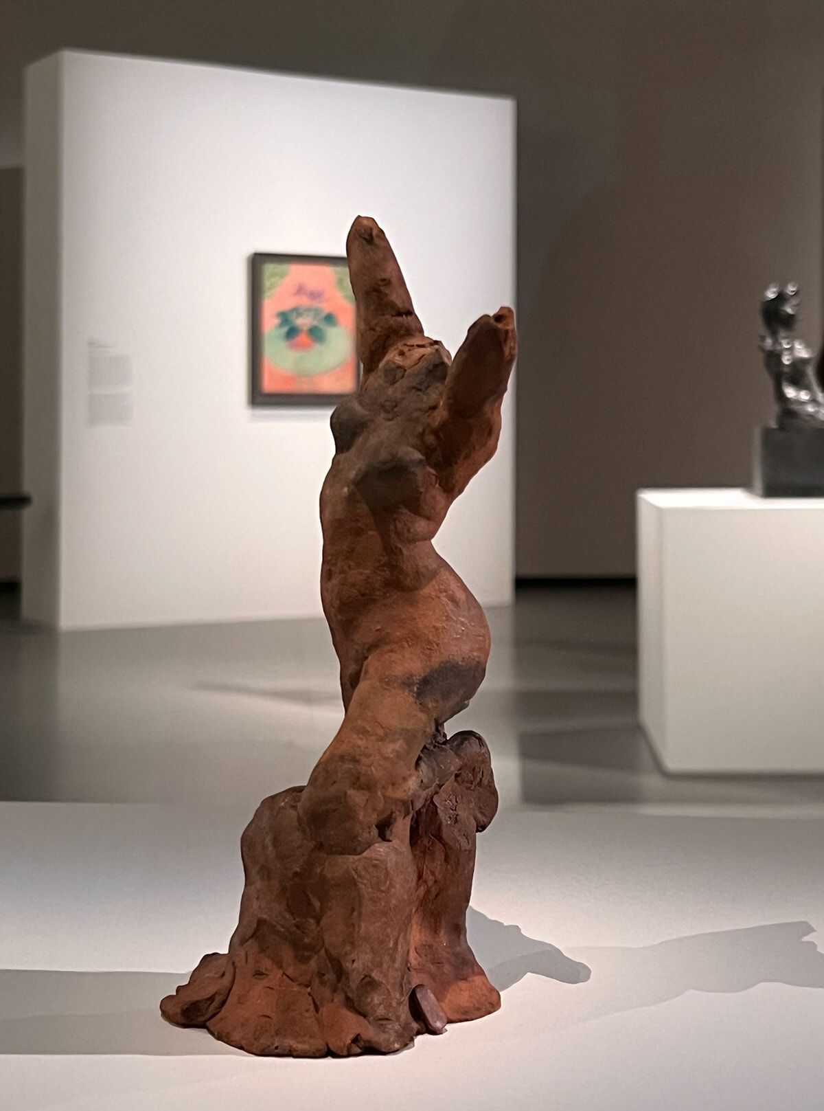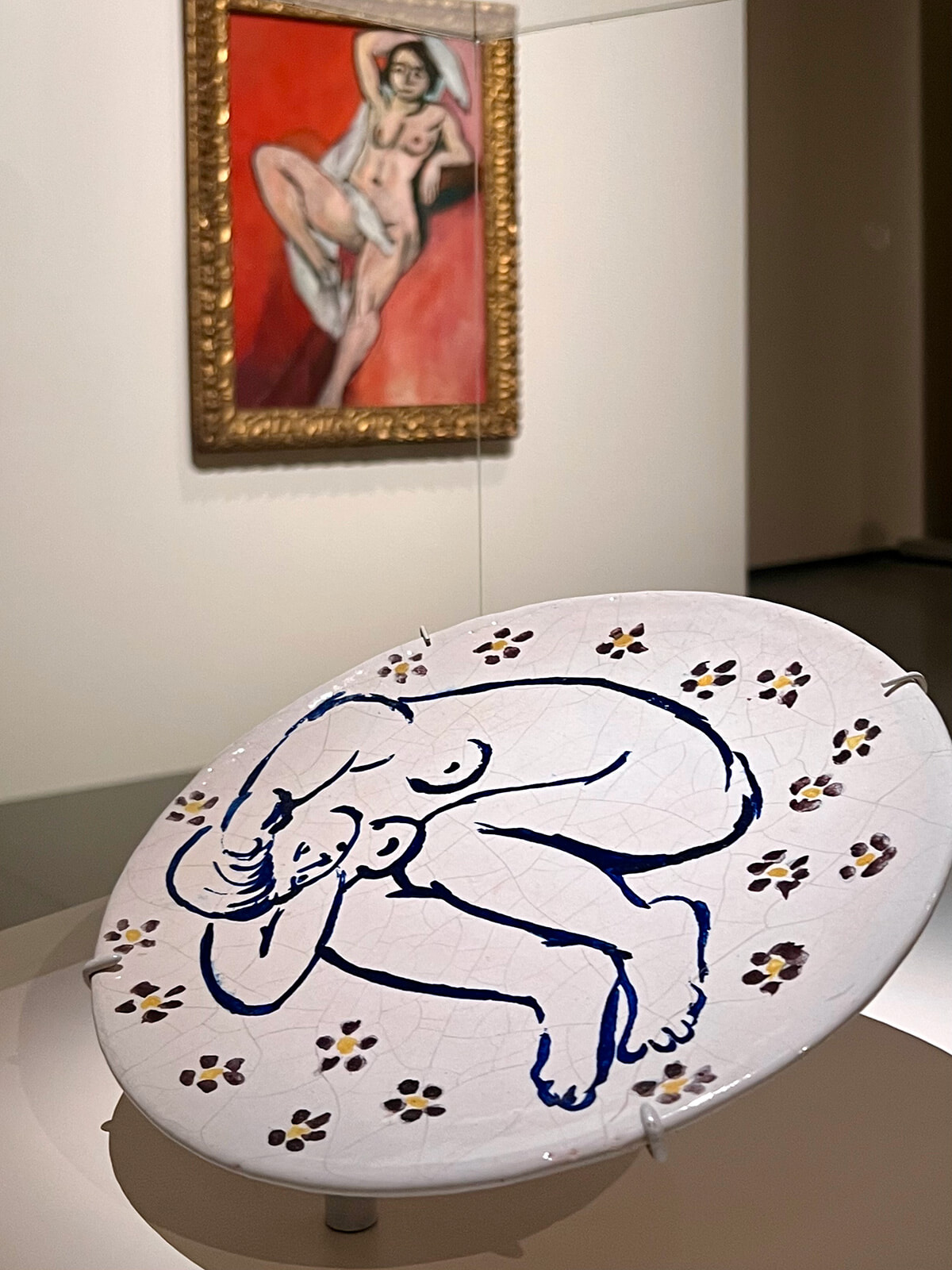 国立デンマーク美術館所蔵の1907年の陶器。その後方はMoMA所蔵の『白いスカーフを着たヌード』(1909年)。Exhibition view : © Mariko Omura