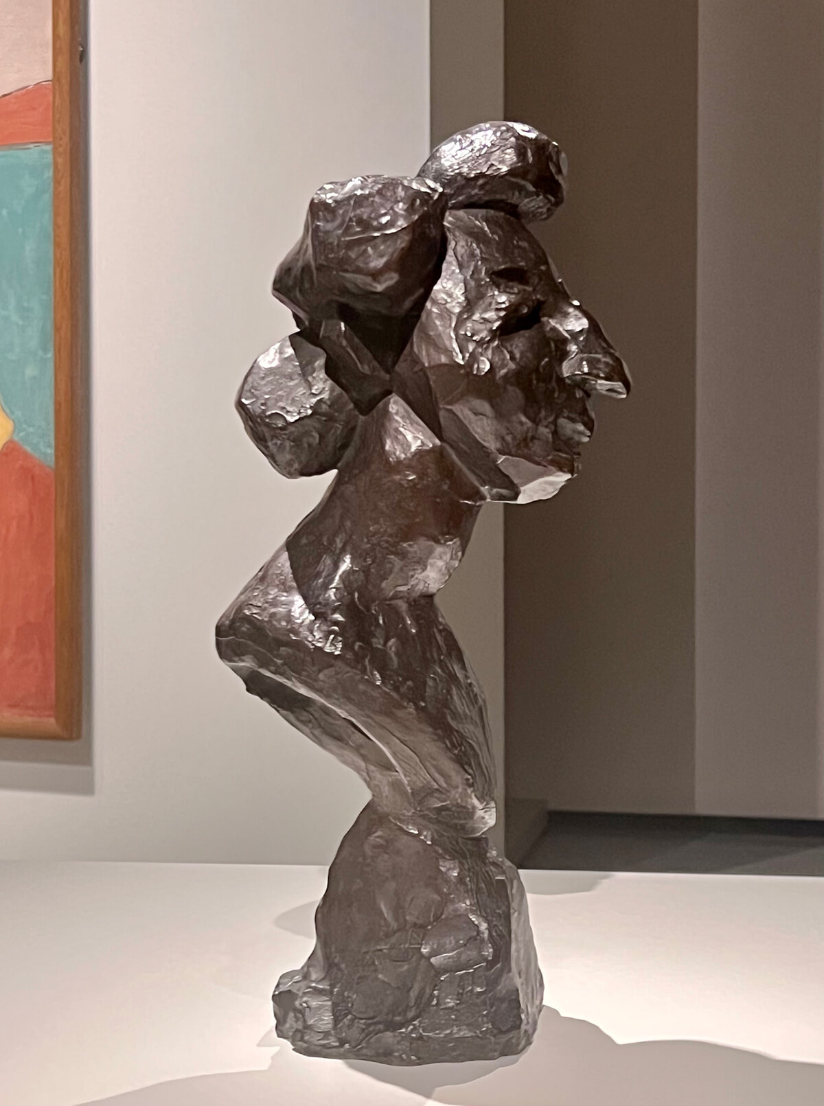 『大きく背を反らせた立裸像』(1906〜7年)。後方に見えているのは、イッシー・レ・ムリノーの庭に咲く花を描いた『シクラメン』(1911年)だ。Exhibition view : © Mariko Omura