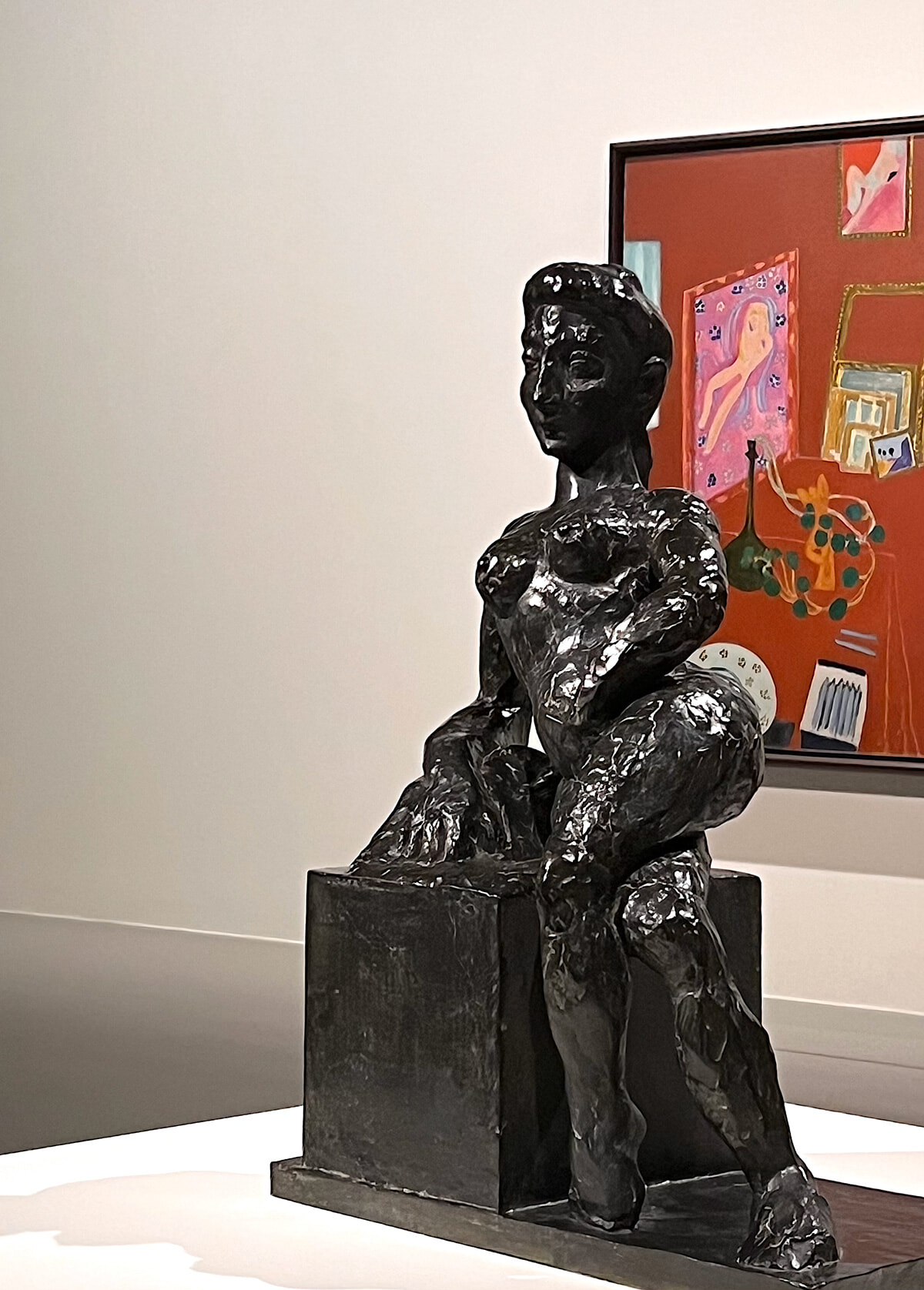 キャンバスが赤で満たされ、画家が自分のアトリエを描いた作品の中でも画期的なものとされる『赤いアトリエ』。展覧会のプロローグは、このアトリエについてだ。パリに隣接する町イッシー・レ・ムリノーに、マティスのために作られたアトリエの建築面などを紹介している。それに続くのがメイン会場で、『赤いアトリエ』とともに展示されているのは、その中に描かれている1898年から1911年にかけて制作された6点の絵画、3つの彫刻、1つの陶器だ。見慣れた作品もあれば、初めてその存在を知るような作品も展示されていて興味深い。