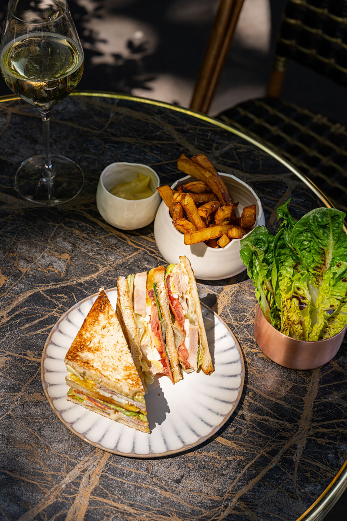 フランス式クラブサンドイッチ(28ユーロ)。ポメリーのシャンパン(20ユーロ)のペアリングができる。photography: lephotographedudimanche