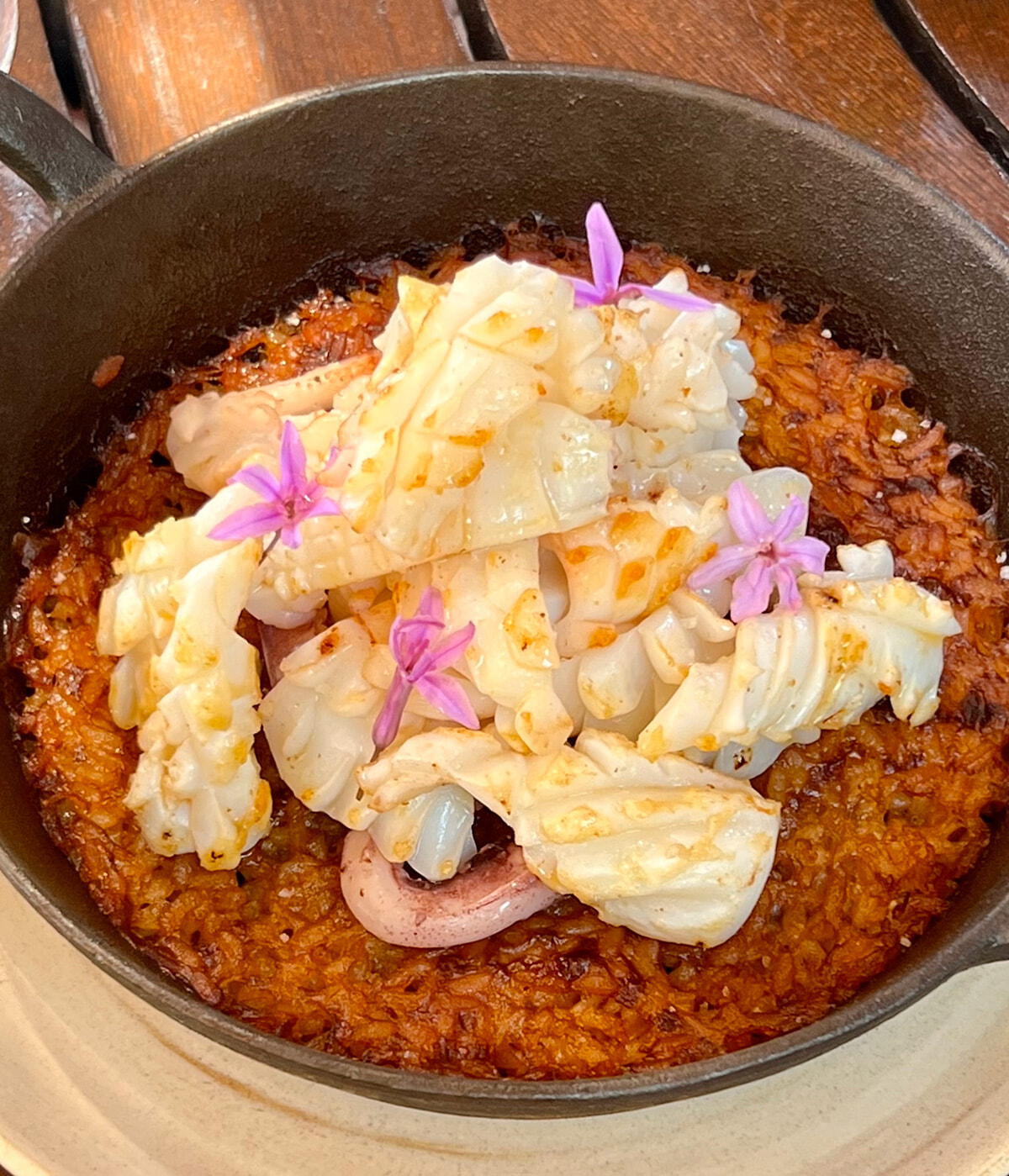 メインから。イカとパエリア風に仕立てたカマルグ地方のライス。photography: Mariko Omura
