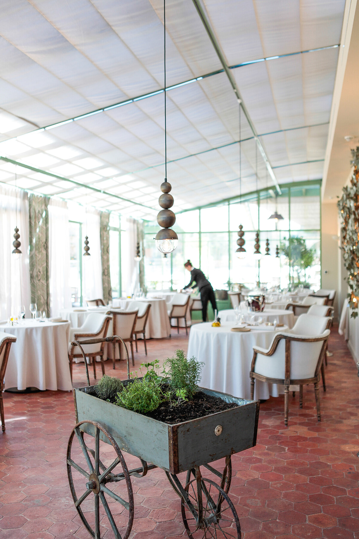 ルレ&シャトーの5ツ星ホテルであるChâteau de Berne(シャトー・ドゥ・ベルヌ)は、マルセイユとニースの間に位置するles Arcs Draguignan(レザルク・ドゥラギニャン)。TGV駅から車で25分くらいの場所にある。ワイン通ならこの名前に、すぐに角形ボトルに入った爽やかな飲み口のロゼワインを思うのでは? ワイナリーとしても有名なシャトー・ドゥ・ベルヌ。600ヘクタールという広い敷地を持つホテルにはタイプの異なる3つのレストランがあり、どれも宿泊客以外にも開かれている。そのひとつ、レストランLe Jardin de Berne(ル・ジャルダン・ドゥ・ベルヌ)はミシュラン1ツ星そしてグリーンスターも持ち、グルメ客はもちろん持続可能や地球環境への意識の高いガストロノミーファンも集めている。特別な体験ができる料理を求めて、ヘリポートを有するホテルにはモナコから飛んでくる客もいるそうだ。ワインファンは醸造所見学、ウェルビーイング派はスパ体験や緑の中の散歩、好奇心いっぱいにプロファンス料理教室に参加、何もしない時間を過ごしたければプールサイドで……さまざまな過ごし方ができるホテル滞在については第2回目に紹介することにし、まずは遠征の価値がある食から始めよう。