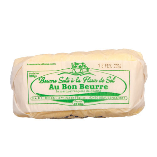 ミルクの香りと味が濃厚な海塩バター。バターというよりもはやチーズのような味わいです。焼きたてのバゲットにのせるだけで、どんなパンでもごちそうに。豊かなフランスの香りをお土産にどうぞ! 250g 5.80ユーロ