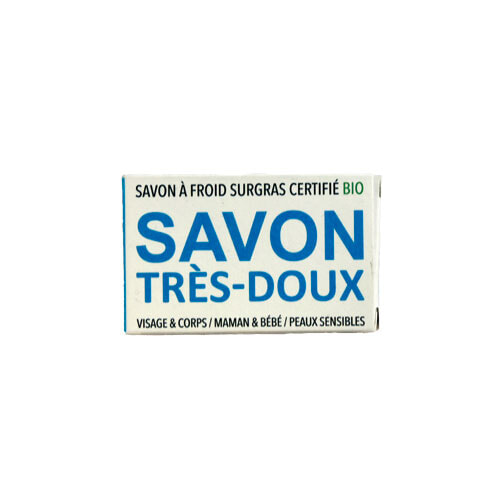 近年、エコの観点からプラスチック製品を買わないパリジェンヌが急増。妊婦やベビーも使える無香料石けん(上5.90ユーロ)とヤギミルクを使ったアーモンドの香りの石けん(下7.50ユーロ)は敏感肌の人でも安心。