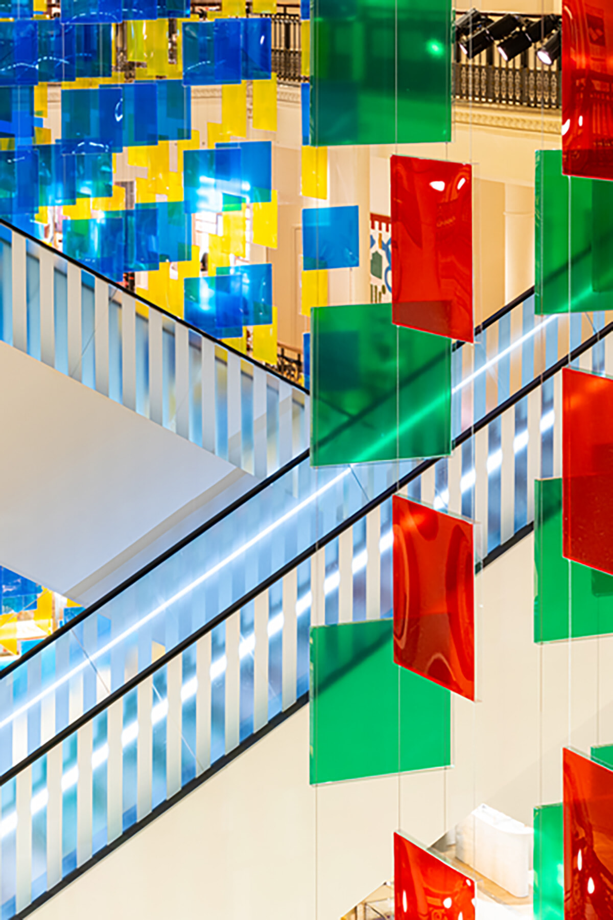 エスカレーターにはストライプが。©️DB-ADAGP Paris Photo ©️Stephane Aboudaram|we are content(s)