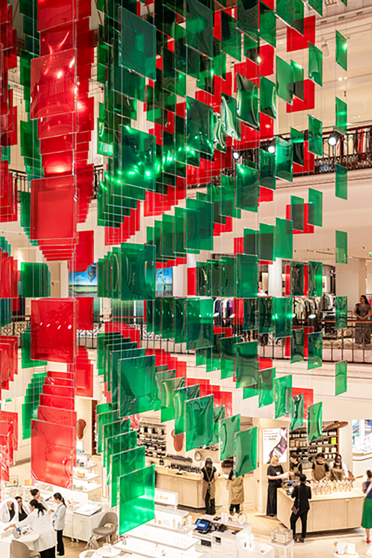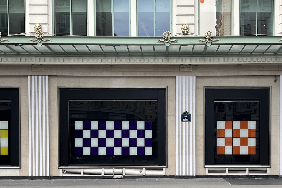 第1幕が2024年1月9日から2月18日に行われたデパートのボン・マルシェにおけるダニエル・ビュランによる『Au Beaux Carrés(オー・ボー・カレ)』展。その第2幕を8月18日まで見ることができる。第1幕を紹介した時に説明したが、カレ(四角)はアーティストがデパートの有名なガラス天井を見てインスパイアされたテーマである。