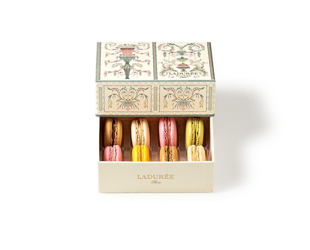 リニューアルの記念マカロンボックス。マカロン12個入り39ユーロ。ラデュレロワイヤルだけの販売。