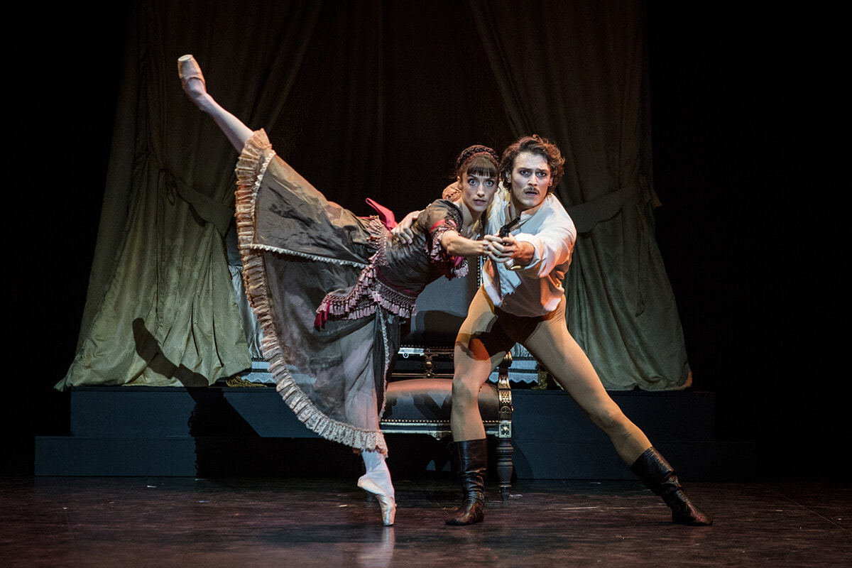 「日本のバレエファンが見慣れた『海賊』とは違って、これはマニュ(注・マニュエル・ルグリ)が振り付けたバージョン。私たちが踊るのはその中の地下室の中での愛のパ・ド・ドゥで、とてもロマンティックなんですよ。愛するふたりの喜びにあふれる踊りで、そうね、ちょっと『ロミオとジュリエット』のイメージね。でも、私はジュリエットのような子どもじゃなくって恋する大人の女性なの」