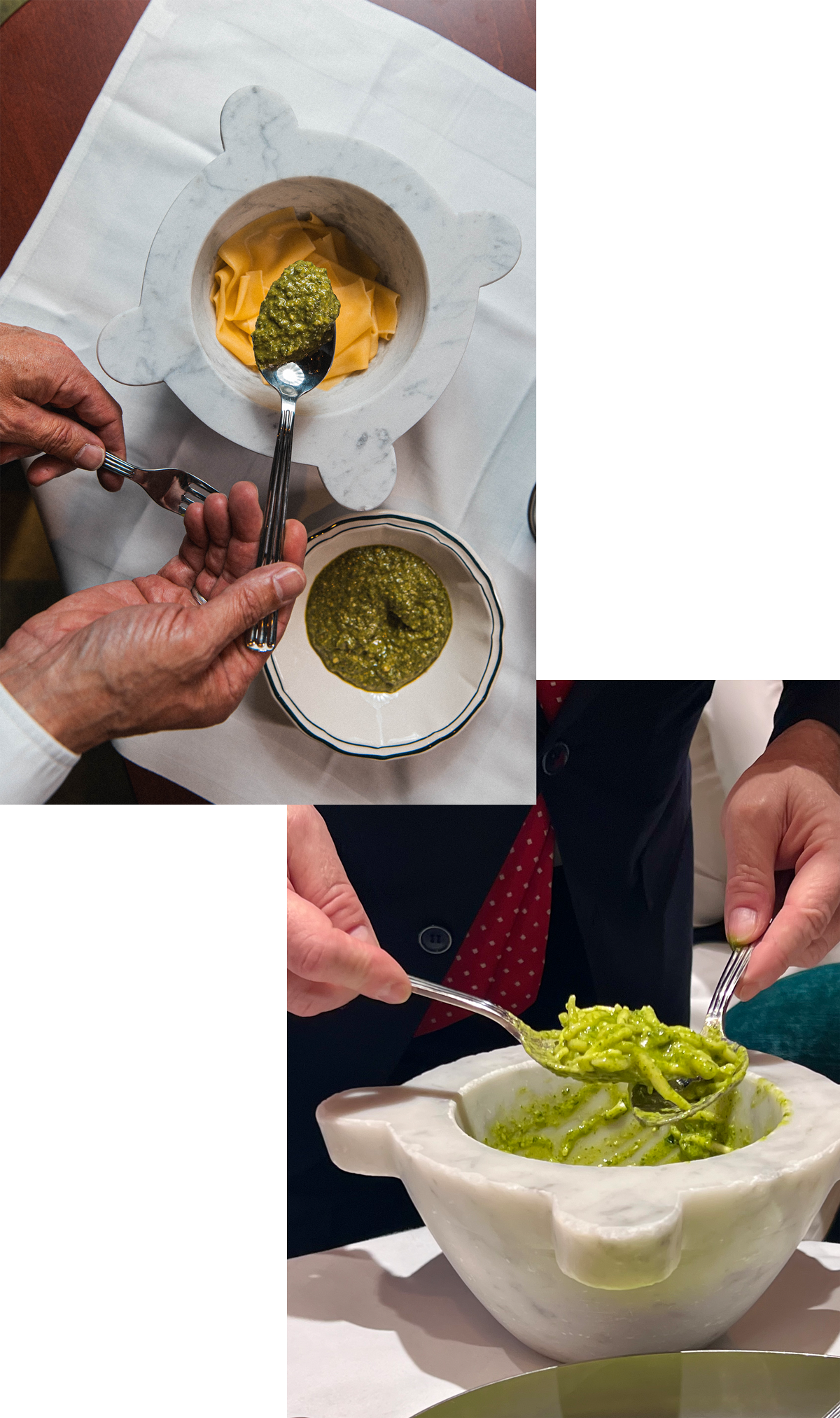 ジェノヴァにゼッフィリーノ・ベローニが開店し、現在は3代目マルコの時代である。オープン以来、大勢のセレブリティを迎えているレストランで、ローマ法王に始まり最近ではセリーヌ・ディオン、その昔はボクサーのモハメド・アリやイタリア出身のフランク・シナトラが常連だった。レストランのもうひとつの名物は、このシナトラ夫妻のためにクリエイトされたというパフュテリ・ア・ラ・シナトラで”有名な”と銘打たれている。これはスモーク・リコッタチーズなどを詰めたラヴィオリにバジルとクルミのクリームソースを和えたもので、ほのかな甘みが癖になりそうな味である。