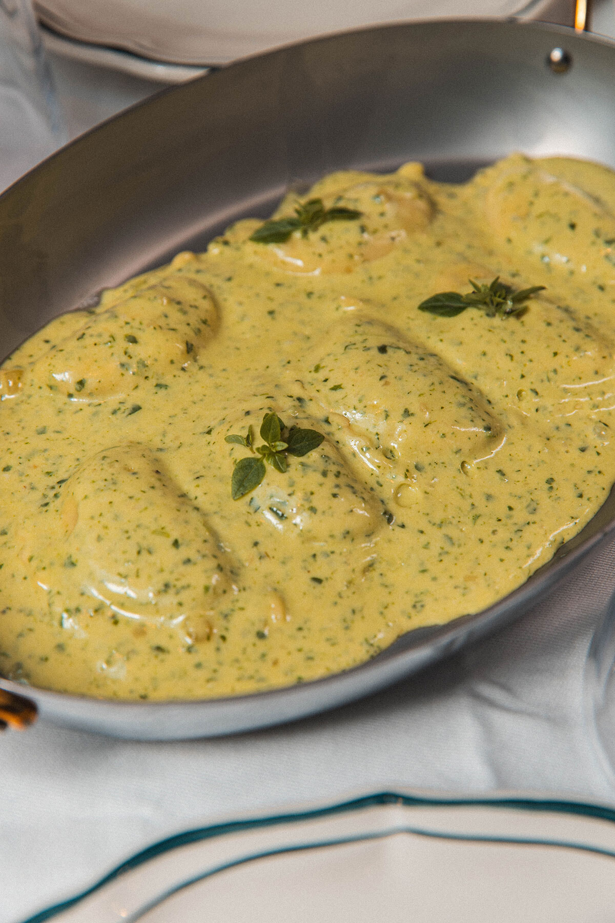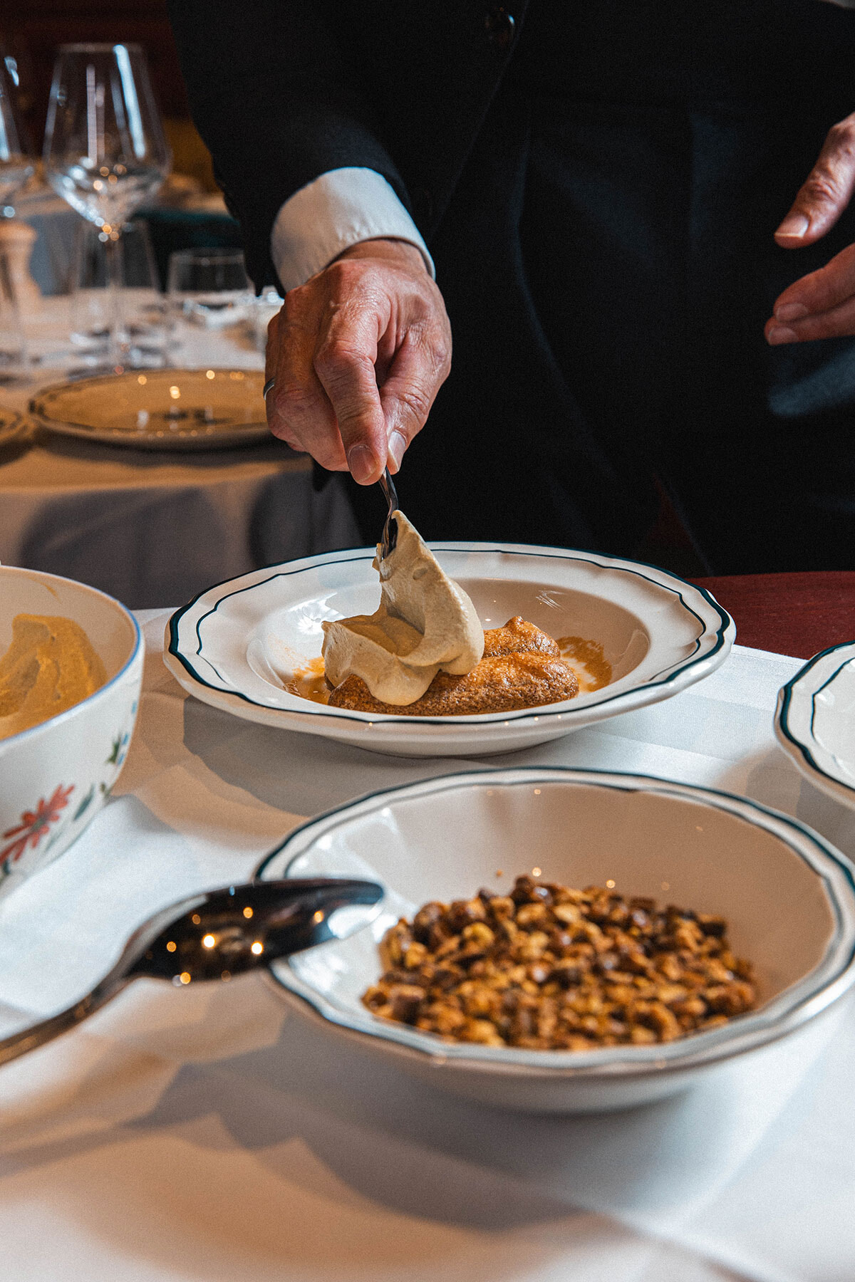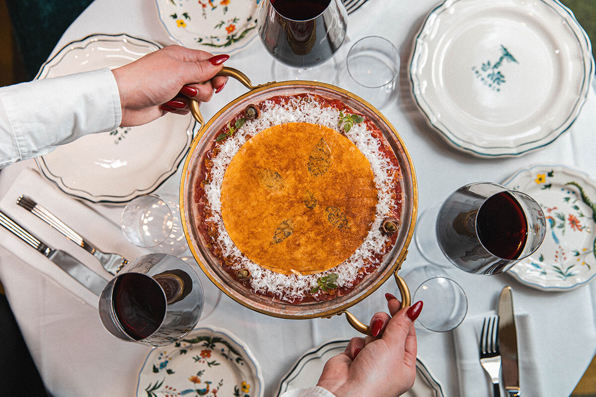インテリアを任されたのはセドリック・カプロンだ。最近の傾向であるモダンタッチを加えることなく、超クラシックにまとめられている。ボワズリーや重々しい家具、大理石のサービスワゴンが作り上げる20年代のアールデコから70年代にいたるまでを巧みにミックスしたグラマラスでエレガントな雰囲気。白いクロスのかかったテーブルに座り、白い制服を着たカメリエーレ(ボーイ)に給仕されると、何やら映画のワンシーンを生きているような気分になる。オーセンティックな高級イタリアン。ちょっぴりオシャレして出かけたい。