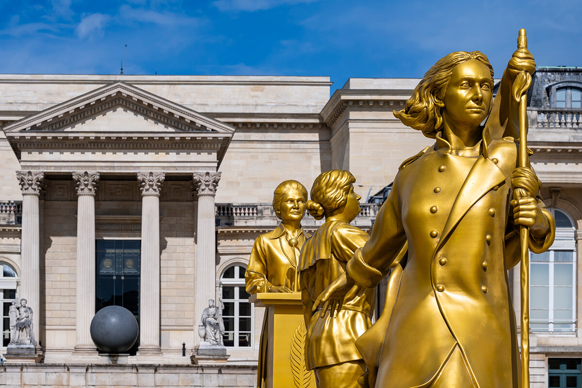 一方、開会式のセレモニーでセーヌに現れた10人の歴史上の女性たちの金の彫像は、18区の大通りにまとめて設置されるという。