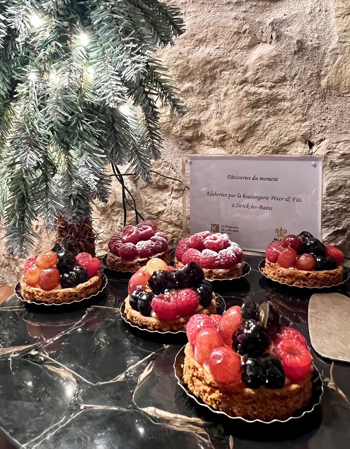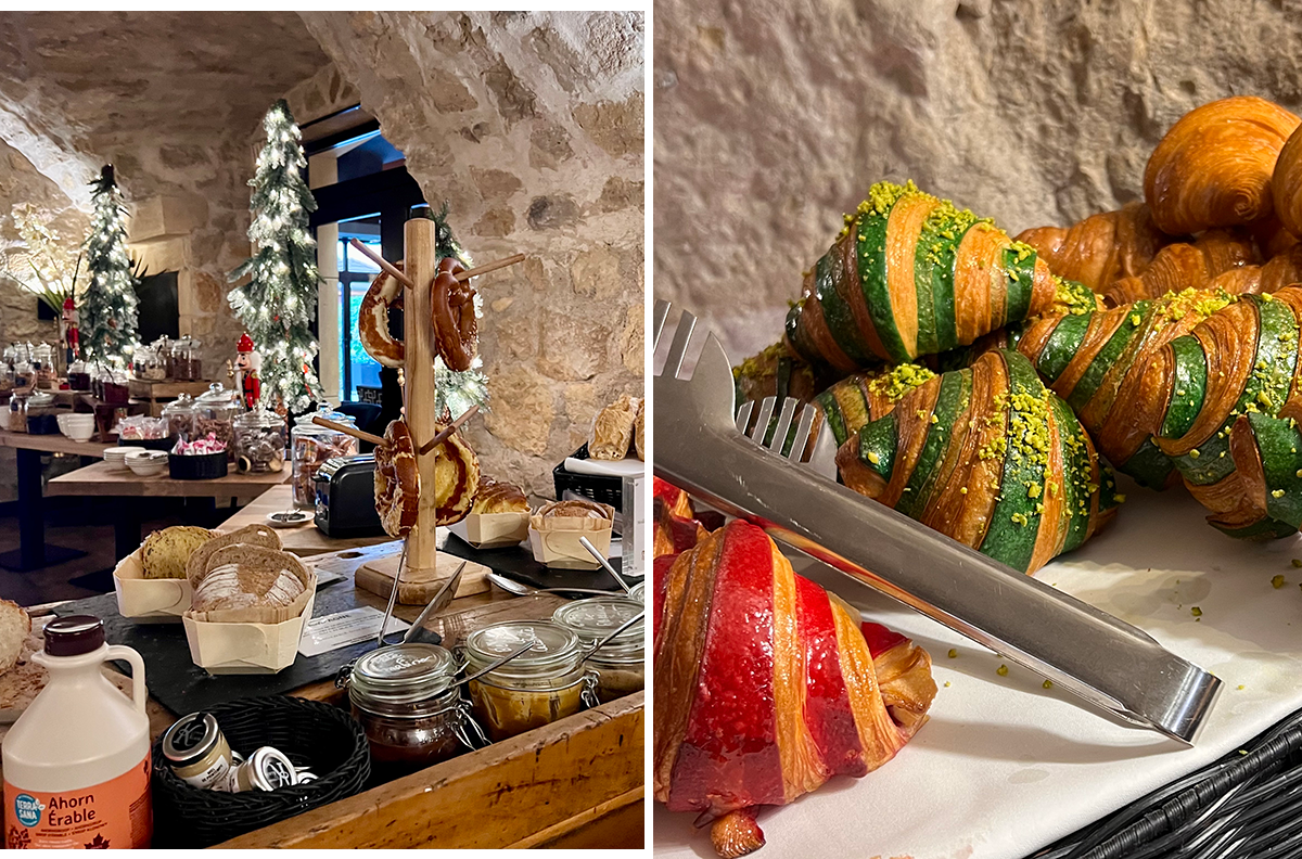 ワン・ミシュランキーを今年獲得したホテル。「特別な滞在」と評価されるカテゴリーで、これは「独自の個性と魅力を持った目的地。型にはまらず、ほかにはない体験を提供している。サービスは常に一歩先を行き、同じ価格帯の宿泊施設より、はるかに多くのことを提案している」というのがミシュランにおける定義だ。ここまでの紹介でル・ドメーヌ・ドゥ・ラ・クラウスが当てはまることがわかるかもしれないけれど、このホテルの魅力は食について語らなければ終われない。ホテルの1階には春にミシュラン1ツ星を得たレストラン「Le K(ル・カー)」とビストロ「Le Komptoir」が ある。この2軒、そしてホテルの門を出たすぐの場所にある「Auberge de la Klauss」での食事については次の機会に……だけれど、食のティージングとして、ホテルの”目移り”ビュッフェ朝食をここに! クレープ、ワッフルなどは作り置きではなく、オーダーを受けてから焼くので熱々だ。こんなちょっとしたことにも、オーナーのホスピタリティが息づいている。