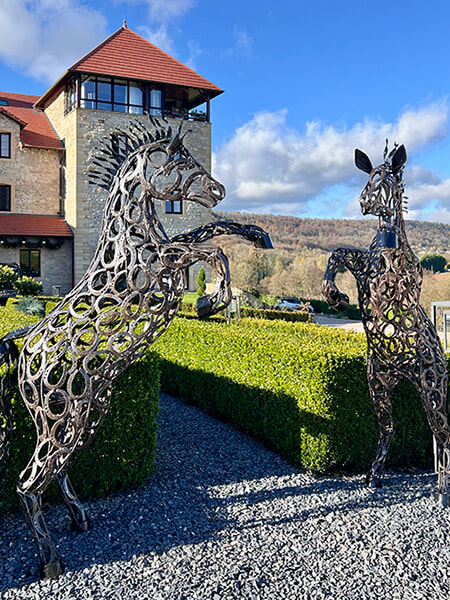 スパがもたらすウェルビーイングは、まさに都会人が求めるところである。さらにホテルでは馬によるリラクゼーションクラスも開催。バー・サロンの前、大自然へと続くホテルの庭の一角にはオーナーの妻で馬におおいなる情熱を抱くマティルドが管理する厩舎が設けられ、そこにはスペインのサラブレッドの調教馬が飼われている。7頭の中にはこの厩舎で生まれたという3歳馬も。乗馬コンペティションの参加者たちが稽古に通ってくる場所でもあるが、ホテルの宿泊客なら厩舎見学ができる。馬について学ぶアトリエも開催(90ユーロ/45分)されているので、それに参加してみてもいいだろう。また馬との関わりを介して自信をつけるというホースコーチングも行なっているが、これは主にホテルでセミナーを行う企業がその一貫として活用するそうだ。