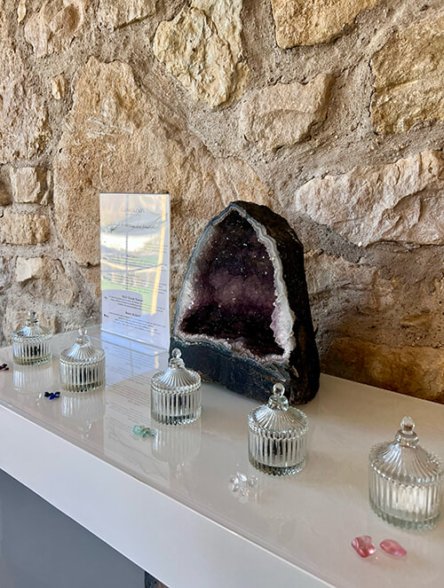 エステティックサロンはパリ生まれの「Gemology(ジェモロジー)」である。名前から察せられるように、宝石のパワー効果を生かしたフェイシャルケアとマッサージなどが受けられる。抗シワ作用と”ソフトフォーカス”効果があるというダイヤモンドを筆頭に、エメラルド、サファイア……。たとえば、ミネラルクラシック(ボディマッサージ30分+フェイシャルマッサージ30分/110ユーロ)など、期待したい肌効果に向く宝石を選ぶことから始まる。妊婦向けのコースや男性用にはヒゲとお肌の美容のためのケアも。