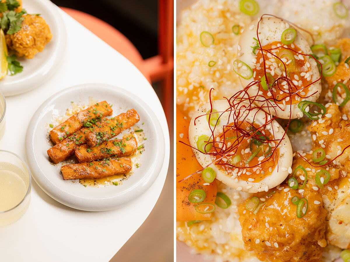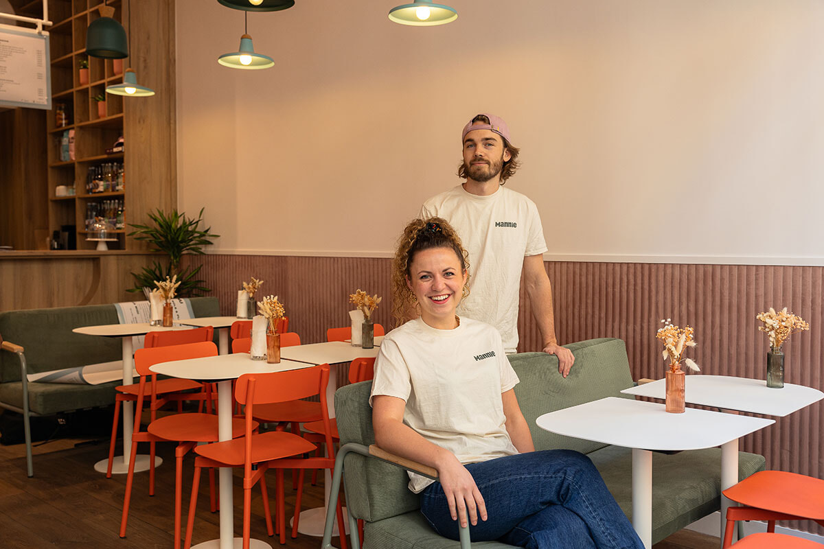 料理学校卒業後パリのいくつかのレストランで働いた経験を持つマキシム・リウフと鉱業を専攻したカネル・ブルヌリエールのふたりが、地球環境に配慮したおいしい料理の食堂的な店を!と願って生まれたのがマニー。子ども時代からおいしいものに目のないふたりは、ベジタリアンバーガーとボウルというパリっ子好みのストリートフードを基本にしたメニューを作り上げた。20代のふたりらしく、いまのパリの食の流行が取り入れられているのはサイドにも言えること。バターナッツかぼちゃのヴルーテやローストポテトといったクラシックと並んで、マヨネーズ味の”Nitamago(煮卵)”があり、またハルーミチーズのスティックフライの味付けは蜂蜜と味噌である。