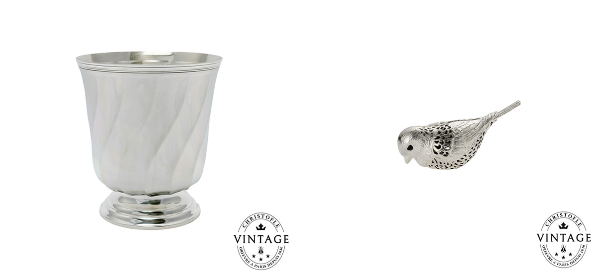 200年の歴史を持つクリストフルに”コレクション・ヴィンテージ・クリストフル”が2年半前に誕生した。蚤の市やブロカントなどでクリストフルのヴィンテージと称して販売されている品を掘り出すのも楽しみだけれど、それ以上に希少なクリストフルの品がこのコレクションによって入手できるようになったのである。”メゾンが愛をもって厳選し、情熱を込めて修復”とうたうコレクションである。古い品を現代に蘇らせることはメゾンの品の素晴らしいクオリティと時代の超越の証明であり、卓越の品を永続させることになり、また循環型で責任ある経済モデルへの取り組みの表明ともなることだ。