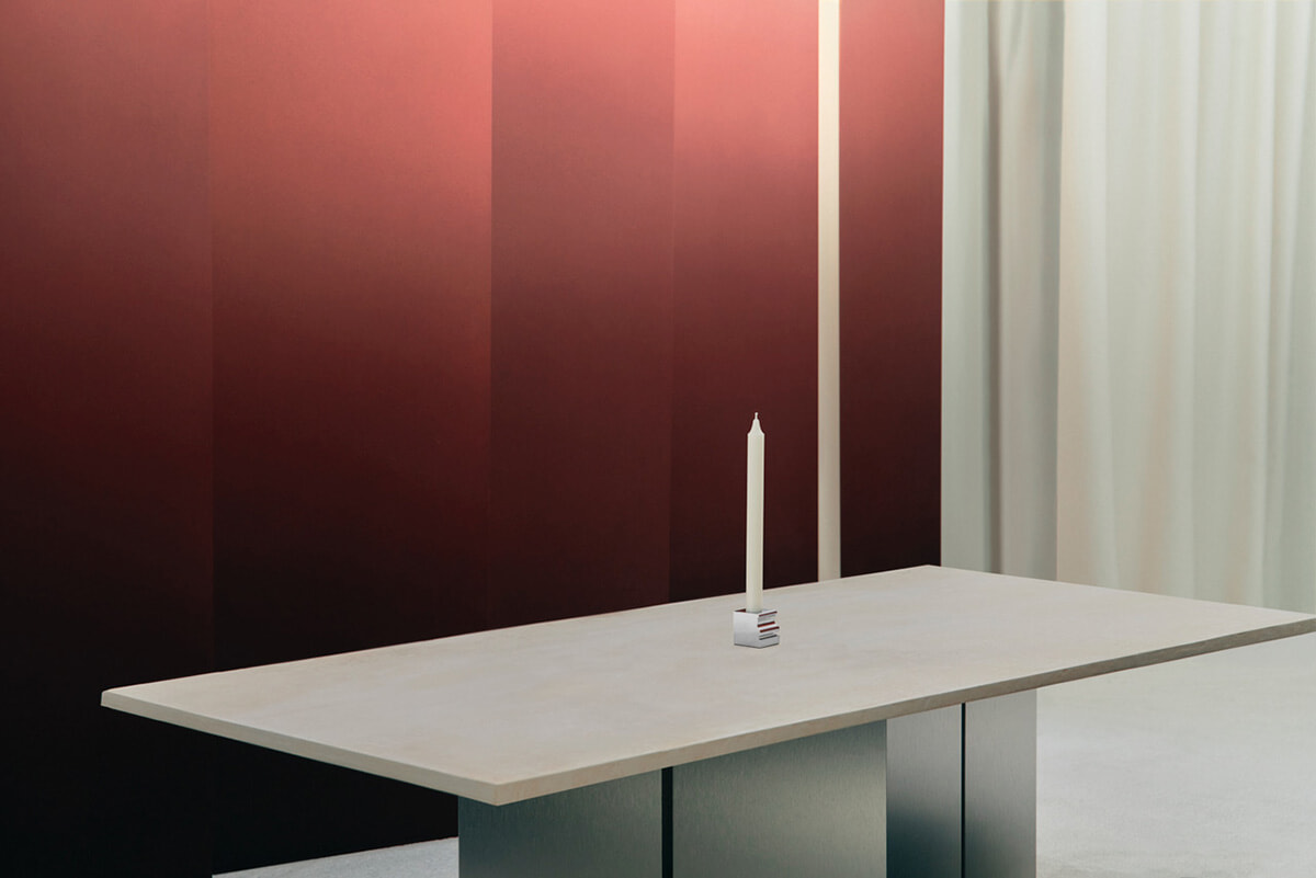 過去にジオ・ポンティ、アンドレ・プットマンなど世界的に名声を得ているデザイナーとコラボレーションを行っているクリストフル。新年早々に発表された新しいコレクションはアーティスト&デザイナーのマティアス・キスによる「Perspectives(ペルスペクティヴ)」だ。彼の仕事の特徴のひとつである額縁の断片のように見えるフリーズを組み合わせたキャンドルスタンドや燭台などコンテンポラリーな6点のコレクション。素材は意外にもシルバーではなくアルミニウムなのだが、それがクリストフルのサヴォワールフェールによって、銀の風格と重厚感を醸し出している。