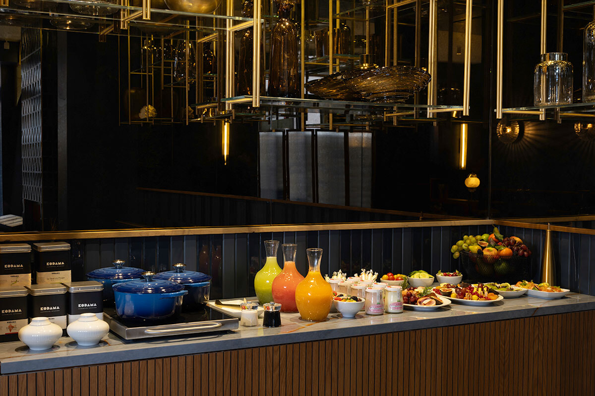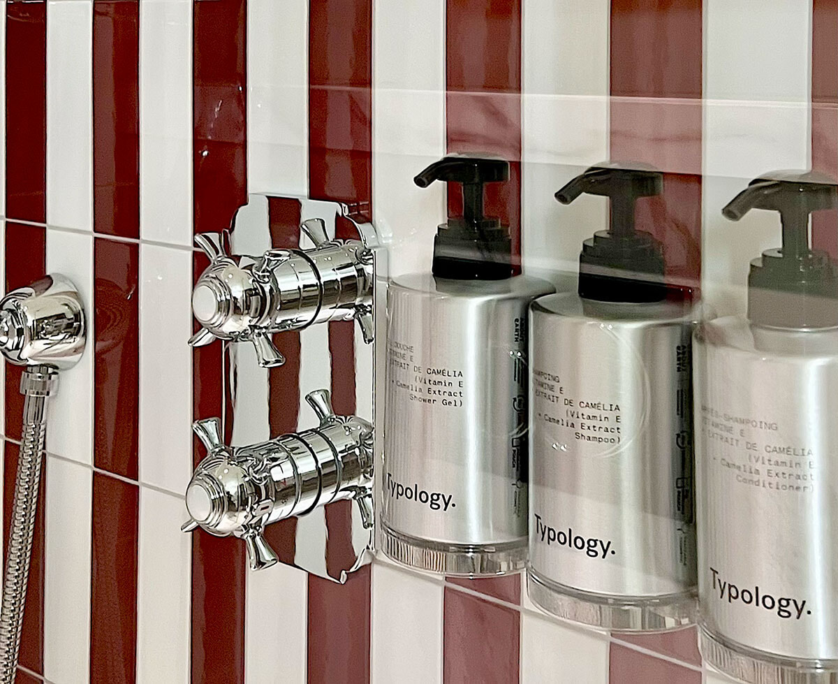 もともとホテルだった場所を買い取った現オーナーが、2年をかけての工事を行い”泊まってみたい!”と思わせるホテルを生み出したのだ。7フロアからなる全43室のこぢんまりしたホテル。地上階の広いロビーラウンジは朝食の場で朝食の場であり、午後12時から16時にはパティスリーのティータイムを楽しめるオネスティーバーである。また地下1階には、フィットネスルームはないがハマムとジャクジーを備えたスパがあり、さらに毎日1客室につき1時間貸切できる小さなプールも。ウェルネスエリアではデイベッドでリラクゼーションタイムが過ごせて、より快適な滞在となる。ただ眠るだけに泊まるのではなく、都会にいながらリトリート気分も味わえるこうしたちょっとしたオマケってうれしい。