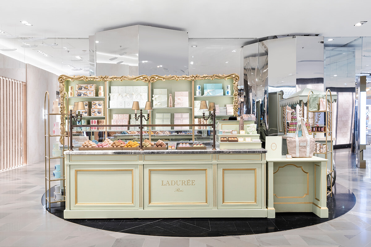 それがおいしい店に越したことはなく、オスマン通りのギャラリー・ラファイエットにもついにラデュレがオープンした。目指すは2階! シェフパティシエのジュリアン・アルヴァレーズによるクリエイションだけでなく、サラダやクラブサンドイッチなどを、メゾンのコードカラーであるアーモンドグリーンにエレガントにまとめられたインテリアの中で味わえる。