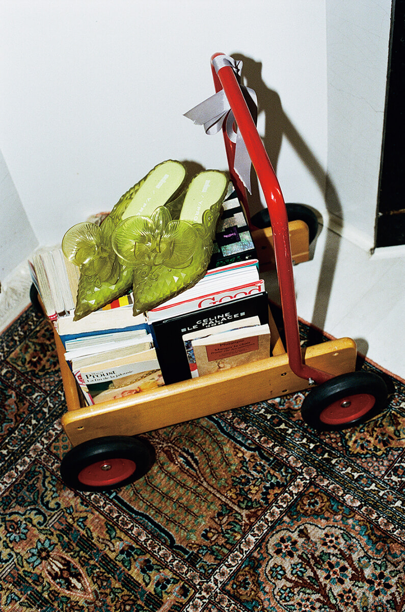 バッグはメゾンブランド、靴はブロカントやヴィンテージショップと、ハイ&ローをミックスするのが好 き。特に気に入っているセリーヌのショルダーバッグと、赤のウエスタンブーツ。