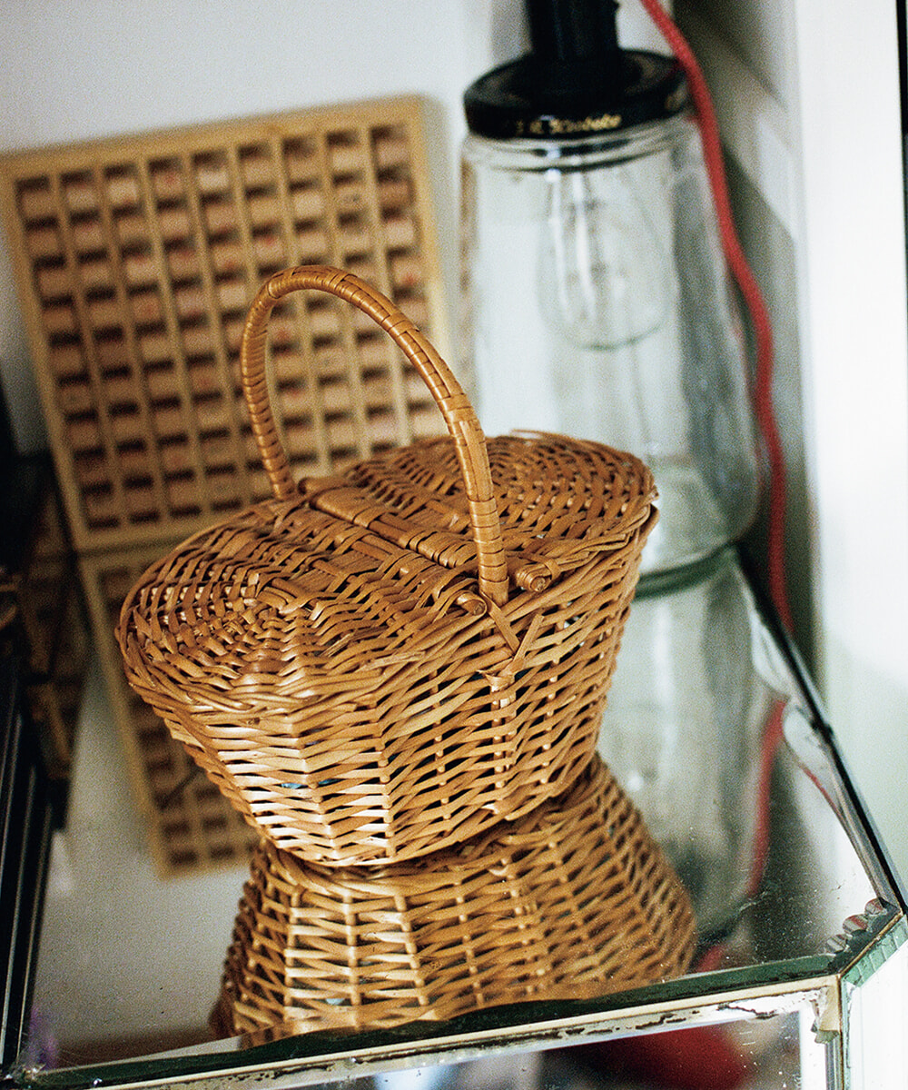 ブロカントで買ったアーティザナルのカゴバッグは、オーバーサイズのデニムやTシャツに合わせて持つことが多い。