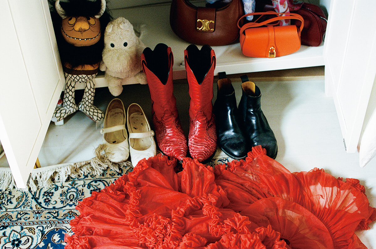 「古い」「新しい」とか「安い」「高い」とか関係なく、彼女のアンテナに引っかかったアイテムが集められたクローゼットは、まるでおもちゃ箱をひっくり返したかのような空間。「ファッションは心をワクワクさせるものだから、私は好き勝手に自分の着たいものを着て楽しんでいるの」
