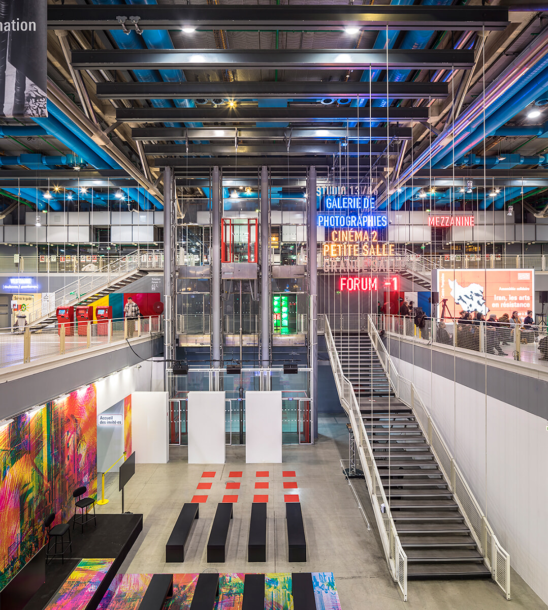 1905年以降のアートを展示する国立近代美術館のほかにも、複数の企画展が常に話題を呼ぶ。アート好きなママなら必ずプログラムをチェックしている子どもアトリエ。映画館、学生が行列する図書館、デザインショップにアート書店も揃う、まさにパリいちばんのカルチャーポイント。ゆっくりと上っていくエスカレーターから、パリの街の表情を眺めるのも楽しみ。「繰り返し訪れたい常設展、セレクトのいい書店。最上階からはパリの景色が一望!」(Émilie Capman/Klin d’Œil 共同創始者)