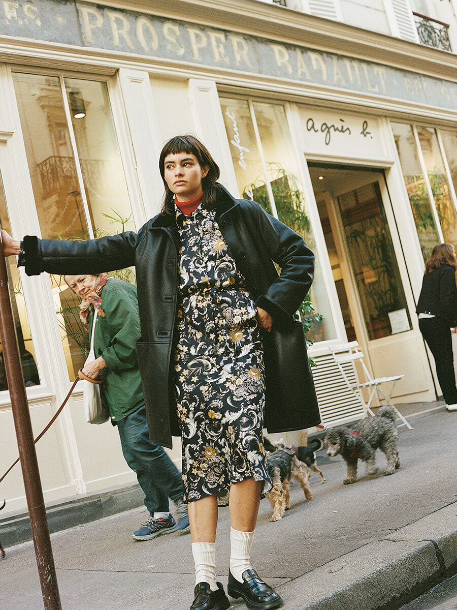 天気の良い日はサン・マルタン運河添いを散歩するのがお気に入りというイリス。必ず立ち寄るのがアニエスべーのブティック。「ベーシックなワードローブが揃うアニエスベーは常にチェックする。フレンドリーなスタッフと立ち話をして、アートやファッションについての情報交換をするのも楽しい」