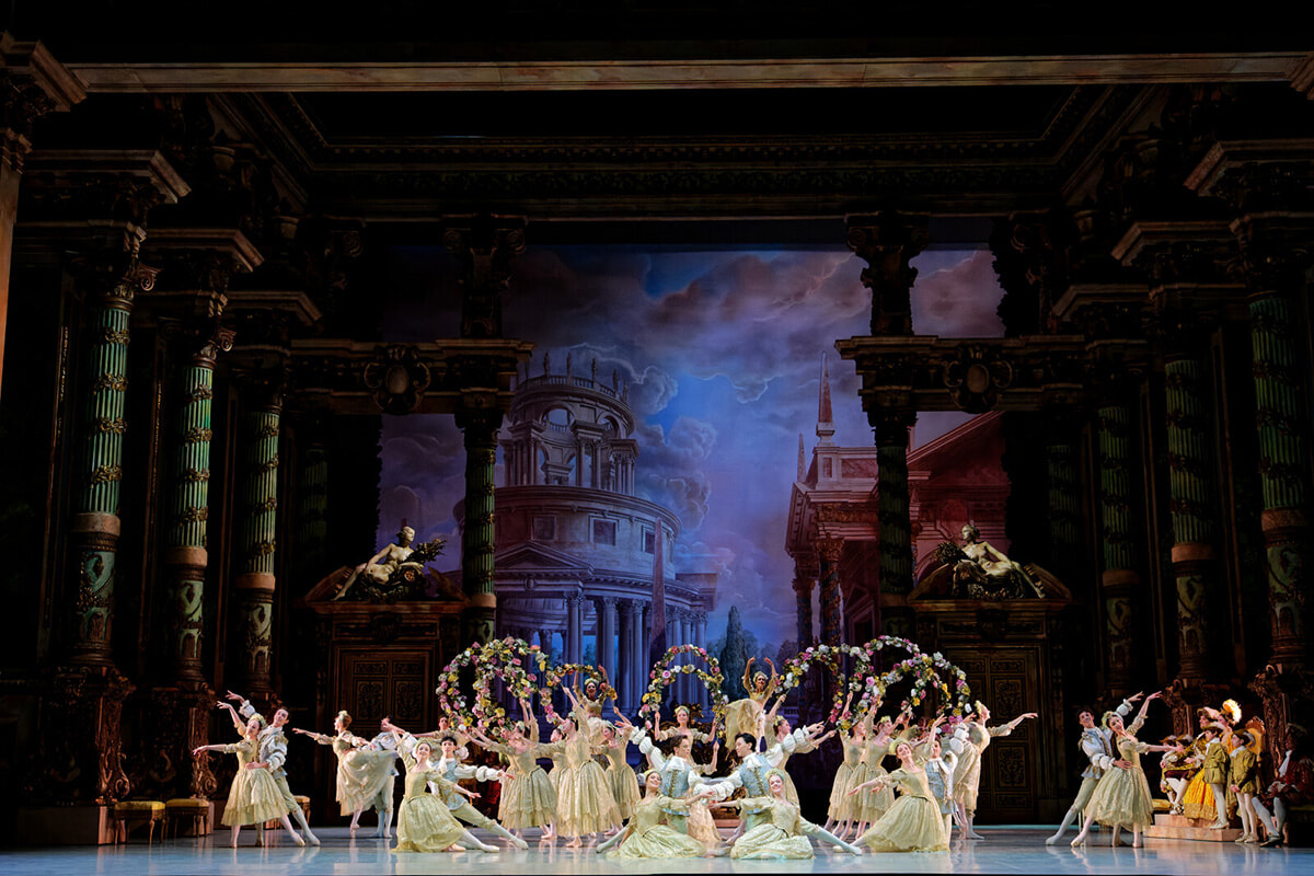 ルドルフ・ヌレエフ版『眠れる森の美女』。ファースト・シリーズの第1配役はブルーエン・バティストーニとギヨーム・ディオップで、ふたりの公演は4月10日に行われる映画館でのライブ上映でも見ることができる。photography: Agathe Poupeney/OnP