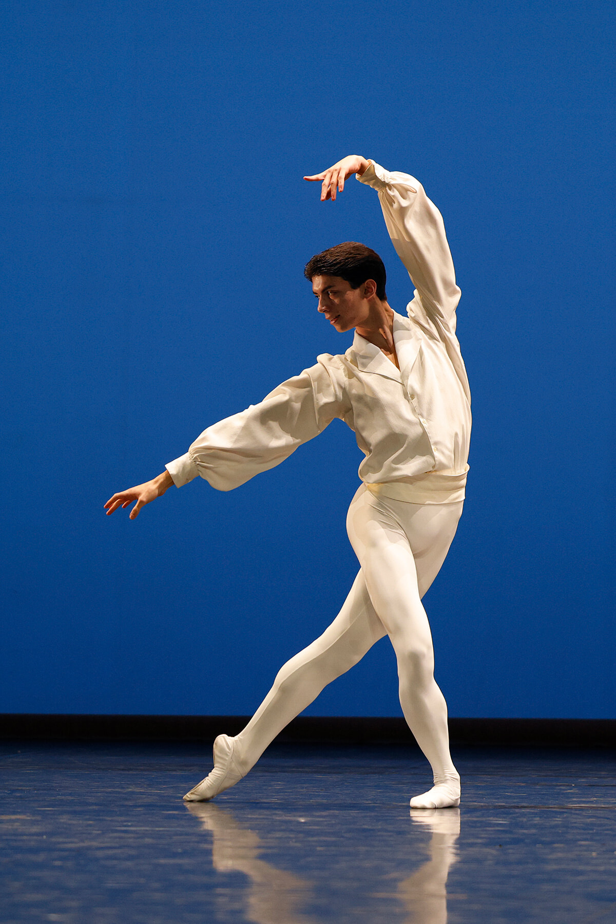 さて、その彼がもうひとつ踊れたらと祈っているのは『ロミオとジュリエット』のロミオ役である。この作品はシーズン2025/26にプログラムされているので、彼のロミオをぜひ見てみたいものだ。長身で整った顔立ちの彼である。今後パリ・オペラ座で踊られるクラシック作品で多くの主役を務めることになるだろうし、その正確でエネルギーあふれるテクニックはとりわけヌレエフ作品で発揮されるはずだ。『ラ・バヤデール』のソロール役も似合いそうだし、少し演技慣れした時には『ドン・キホーテ』のバジル役も魅力的に踊ることだろう。