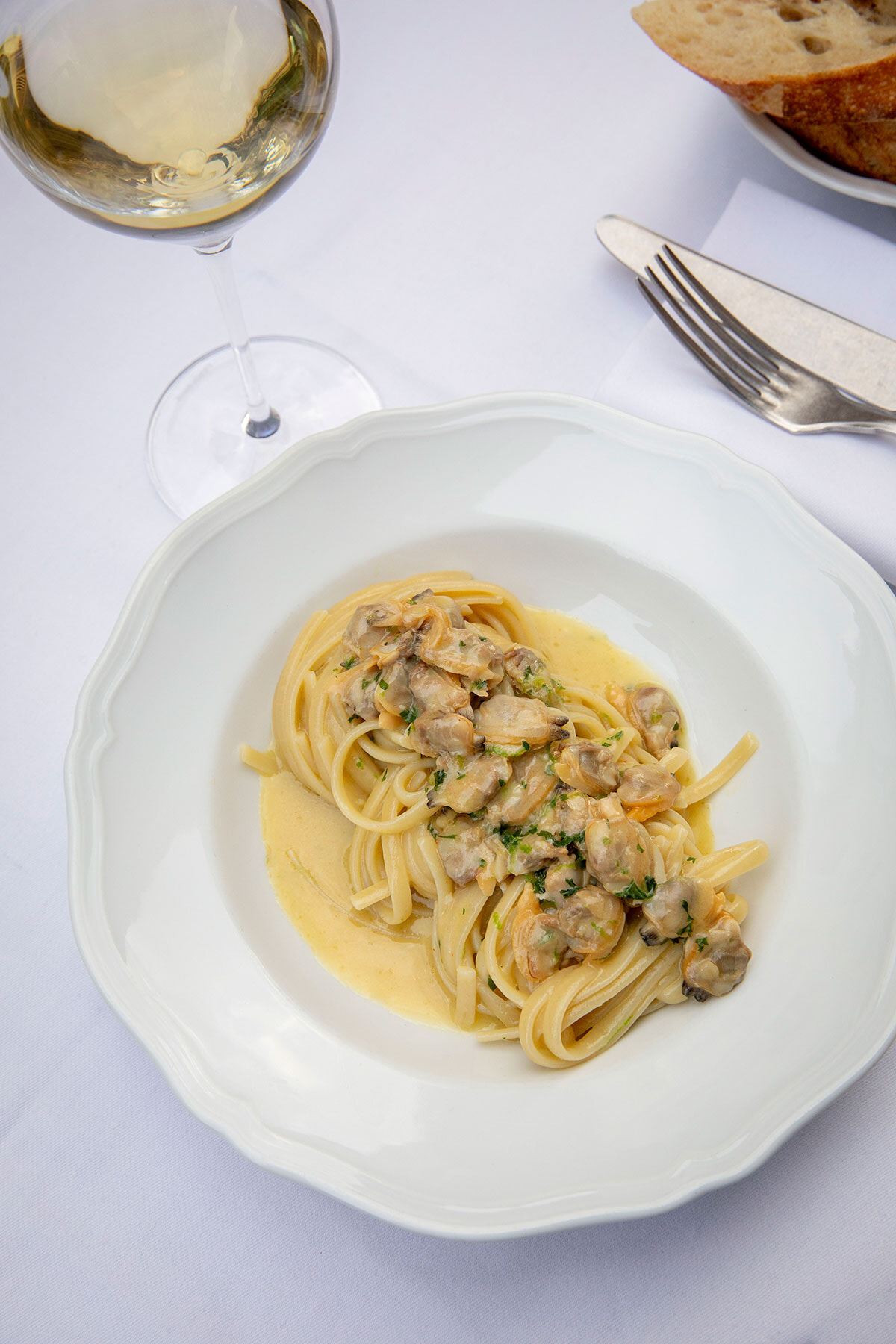 人気メニュー、ボンゴレのパスタ「Linguine alle Vongole」32ユーロ