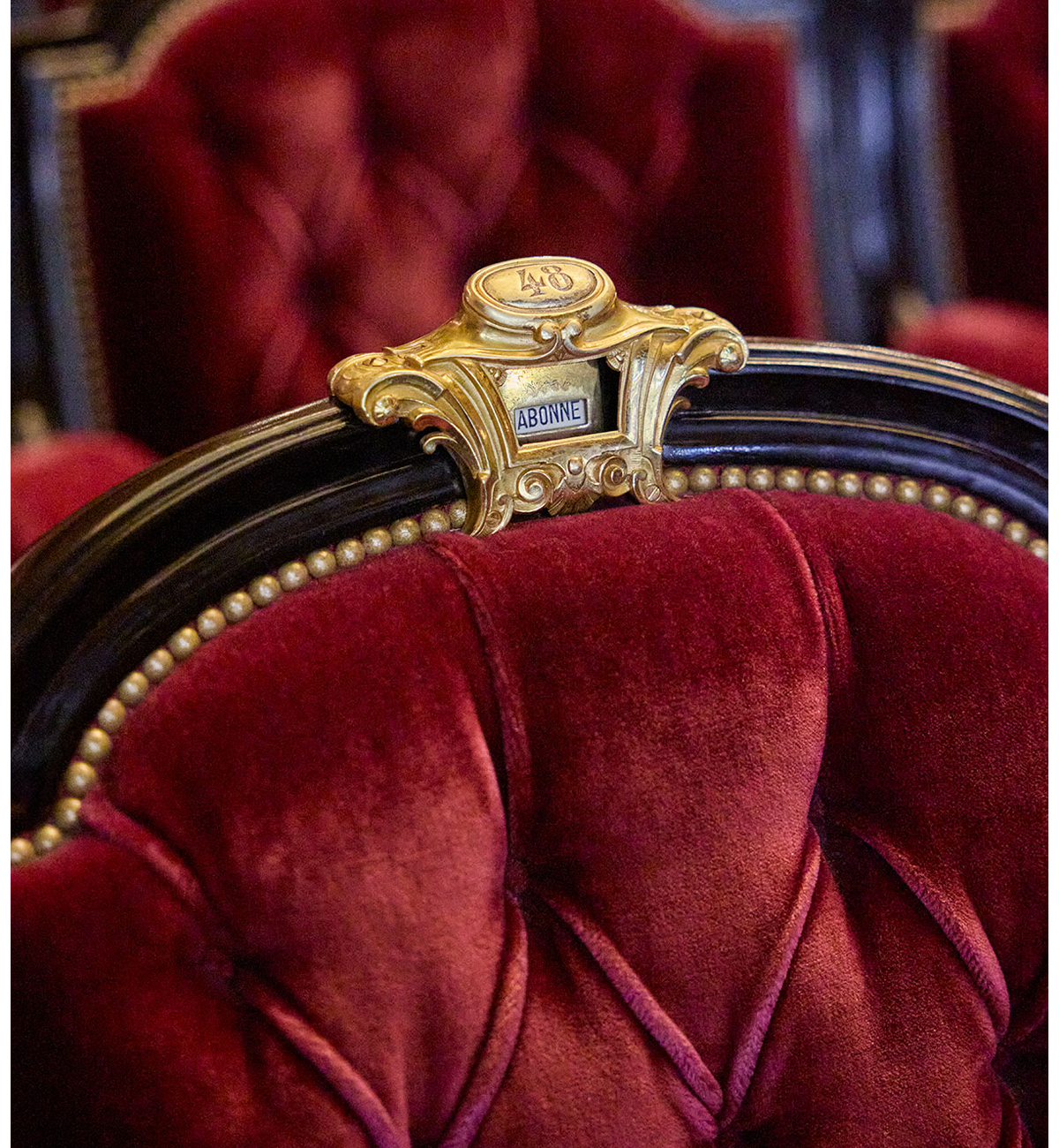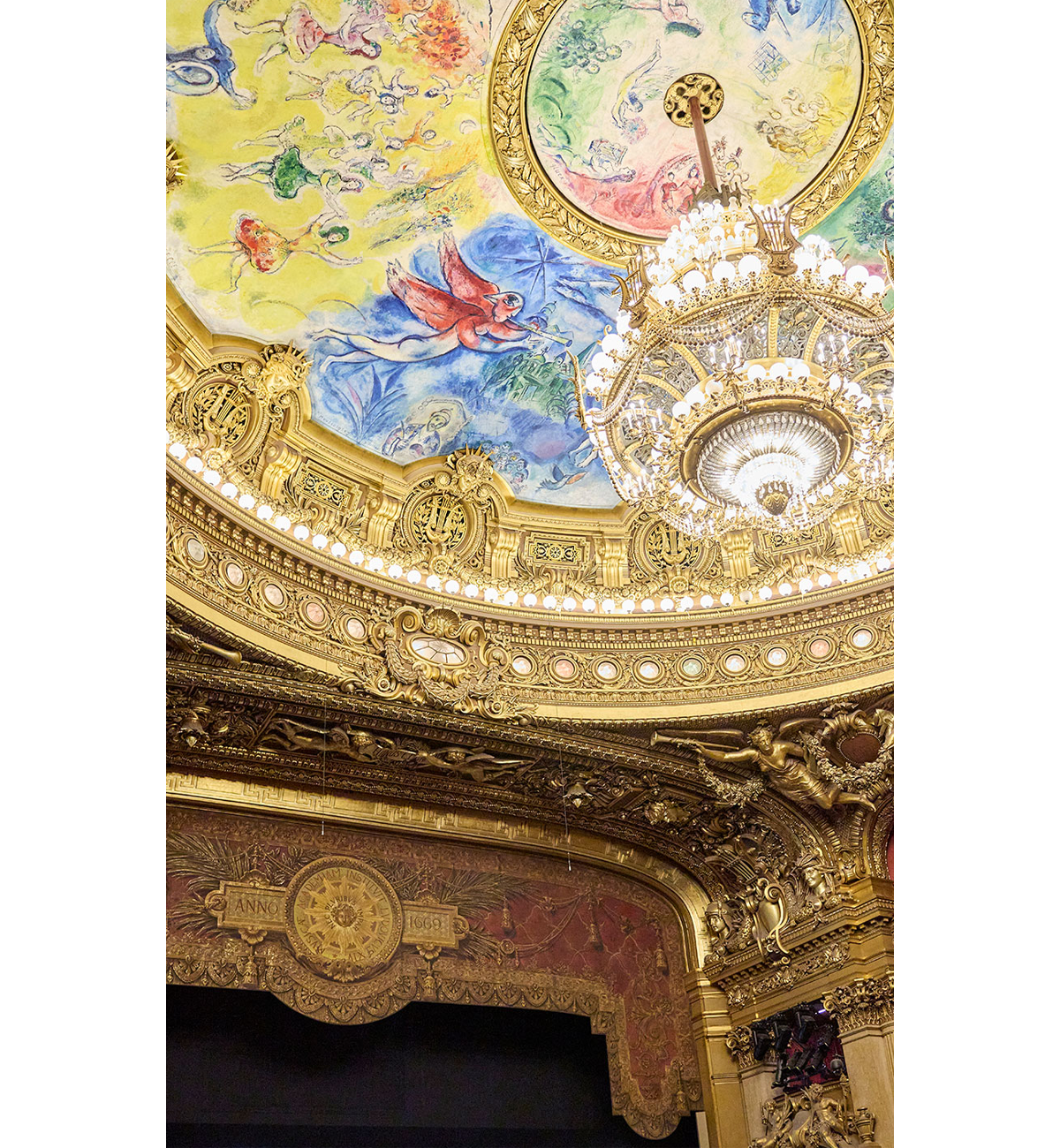 「観客席に座ることも時にはあるのよ。特別なことを体験できる、って中に入るや予感させられる素晴らしい雰囲気! シャガールの天井、装飾など見るものがたくさんあって……カーテンが上がる前、赤い座席に座った時からもうスペクタクルが始まってるのね」