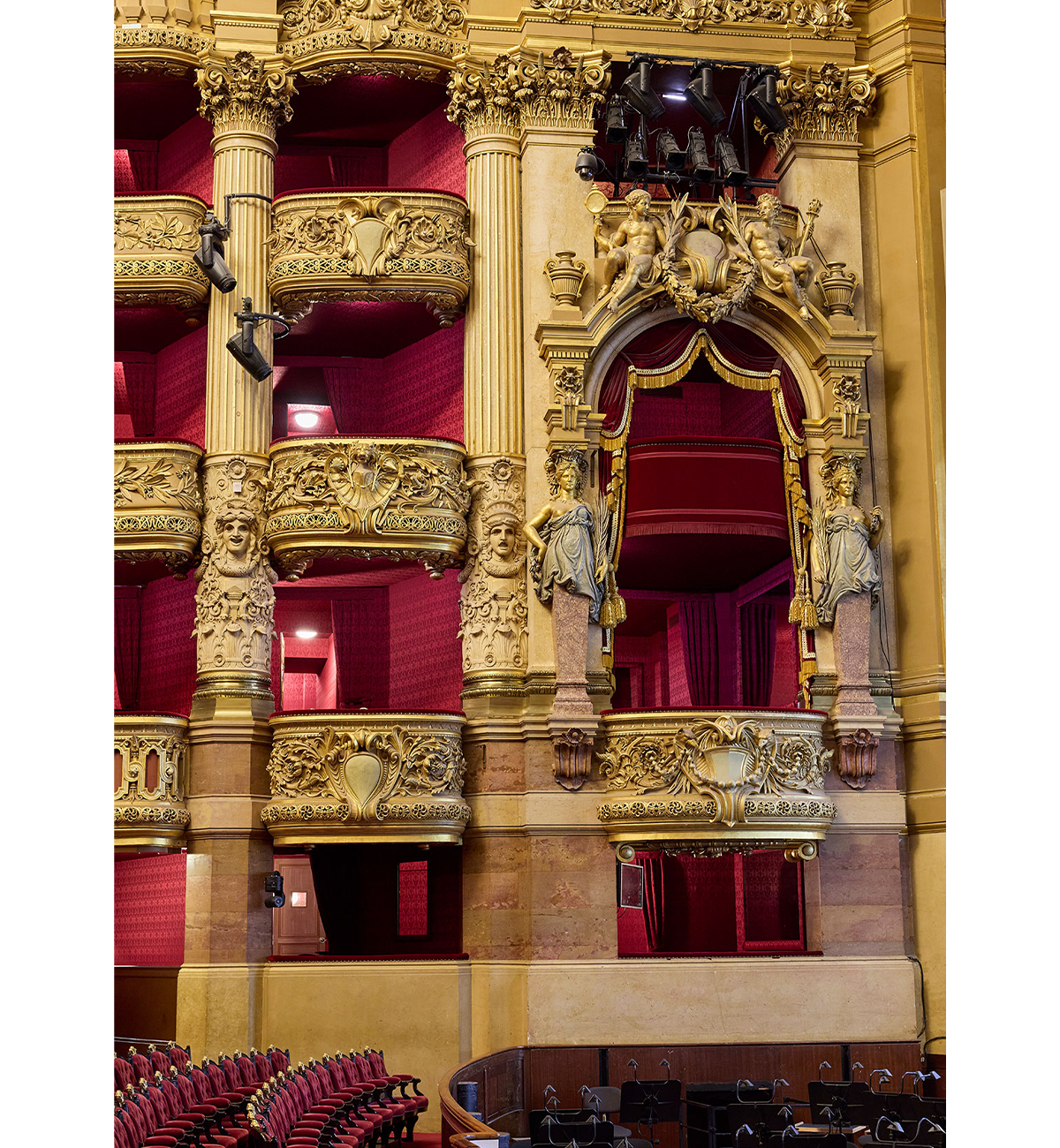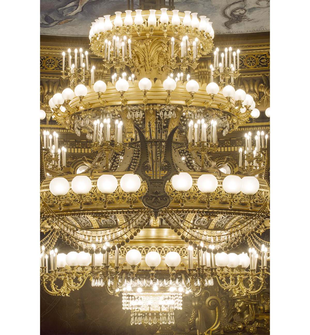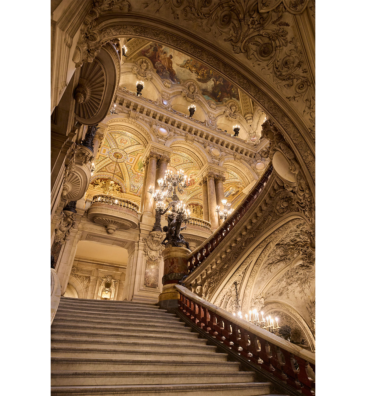 シャルル・ガルニエが機械装置も含めて建築の大傑作を生み出したのが、いまから150年も前のこととは信じるのが難しい。彼は公演鑑賞だけではなく、人々が着飾って歩いたり、休憩したくなるように大階段やグラン・フォワイエをゴージャスに設計した。このナポレオン3世様式と形容される壮麗な劇場には、いまも建築当初と同じように朝から大勢の見学者が集まってくる。この上なく魅惑的な場所で自分を撮影するために、ドレスアップしている女性見学客も少なくない。ガルニエ宮、永遠なれ!