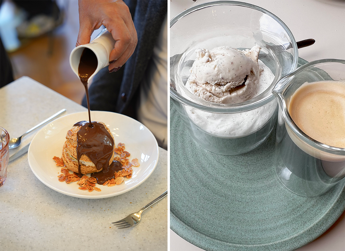 美術館を訪れる国籍様々な人々に、シェフのヤン・ランデュローは季節の素材を用いた現代的なフランス料理を提案している。アラカルトに加え、ランチ・セットメニュー(39ユーロ)もあれば、その日のおすすめ料理もあって選択に迷うほど。アイスクリームが付いた子供メニュー(12ユーロ/10歳以下)も用意されている。メニューで注目したいのは、マニュファクチュール・アラン・デュカスによるアフォガート(17ユーロ)とアイスクリーム、シャーベット。食事の締めくくりまで、とてもフランス的なレストランなのだ。
