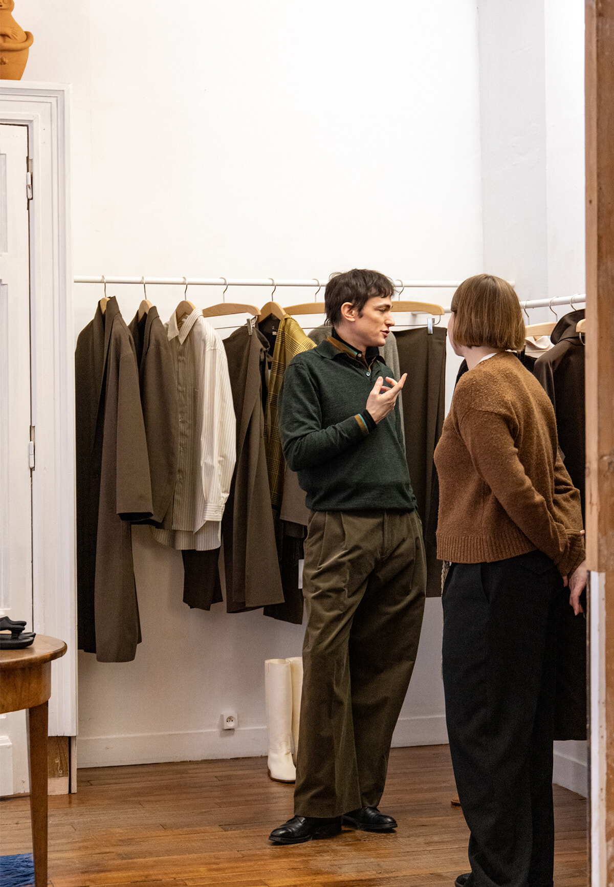 イタリア人デザイナーで僕も仲良しのクリスティーナ・カジーニが手がける、クリスタセヤ。完全予約制のこちらは、ビルの1フロアにスタジオ、別のフロアにショールーム、さらに別のフロアに店舗とギャラリースペースがあり、見ごたえ満載。日本でも洋服の販売はあるけど、ここでブランドのビジョンや世界観を丸ごと感じてほしい! コーデュロイのパンツや、花瓶などいろいろ持っていますが、今年の夏はコットン素材のワイドパンツを購入しようと思っています。