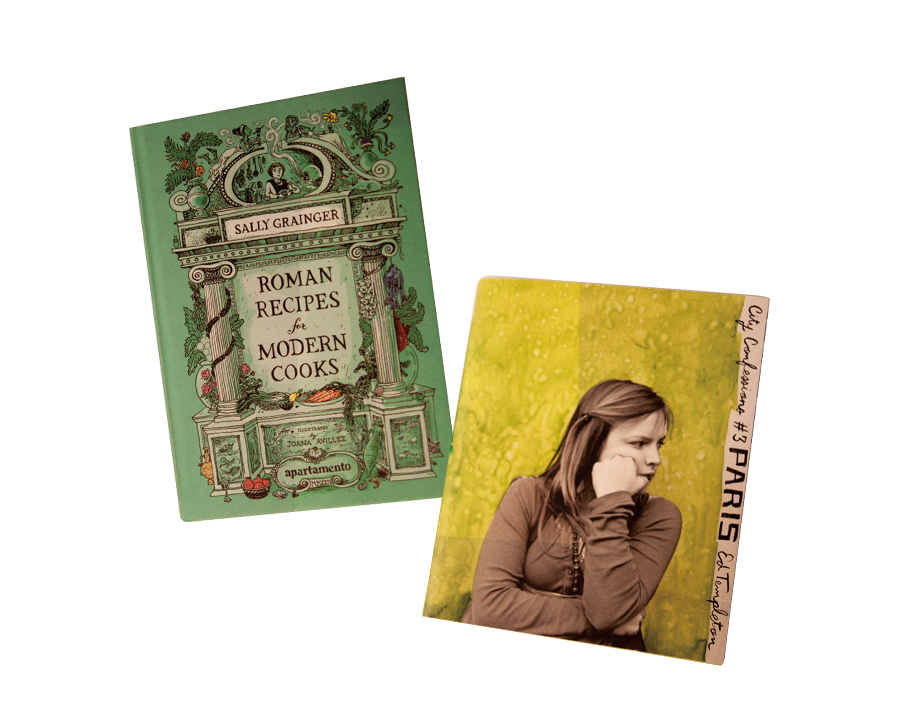 左から、古代ローマ料理を現代風にアレンジしたレシピ本38ユーロ、エド・テンプルトンが23年間撮り続けたパリの日常を収めた写真集39ユーロ