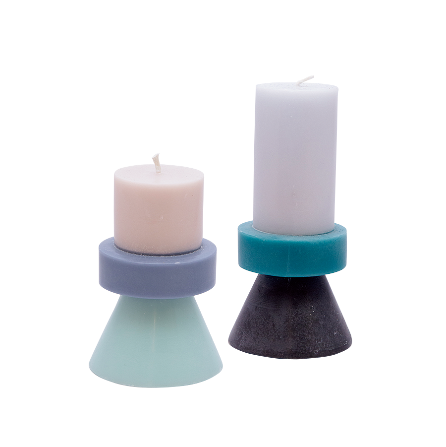 熟練職人による手作業で層ごとに作られるフェアトレードのロウソク。縞模様やツイストなど楽しいデザインが揃うヨド&コーのもの。