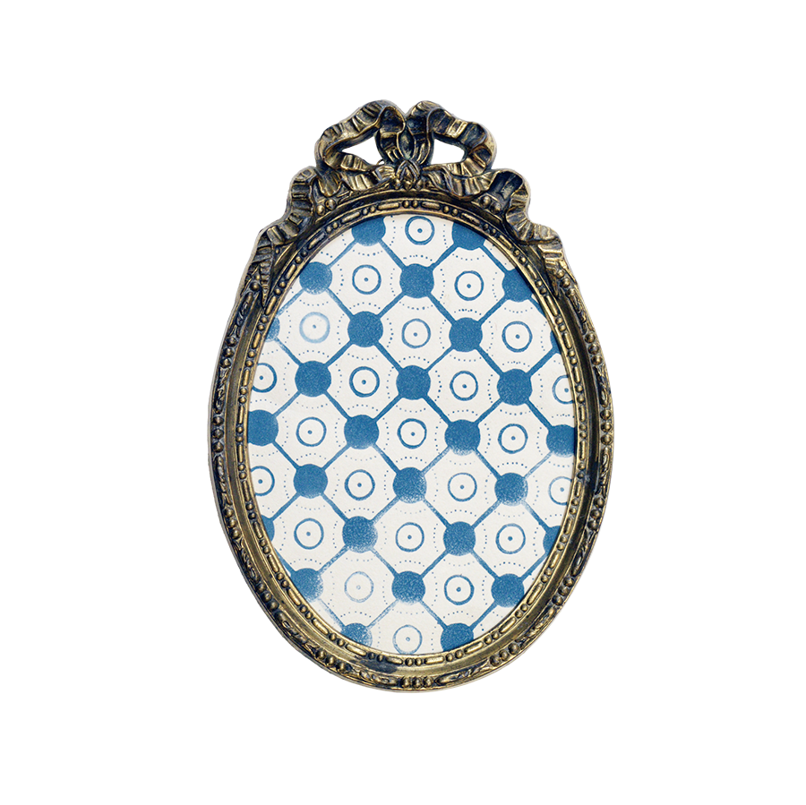 ルイ15世様式のリボンデザインを用いた額。中にはアントワネット・ポワソンのドミノペーパーを入れて。