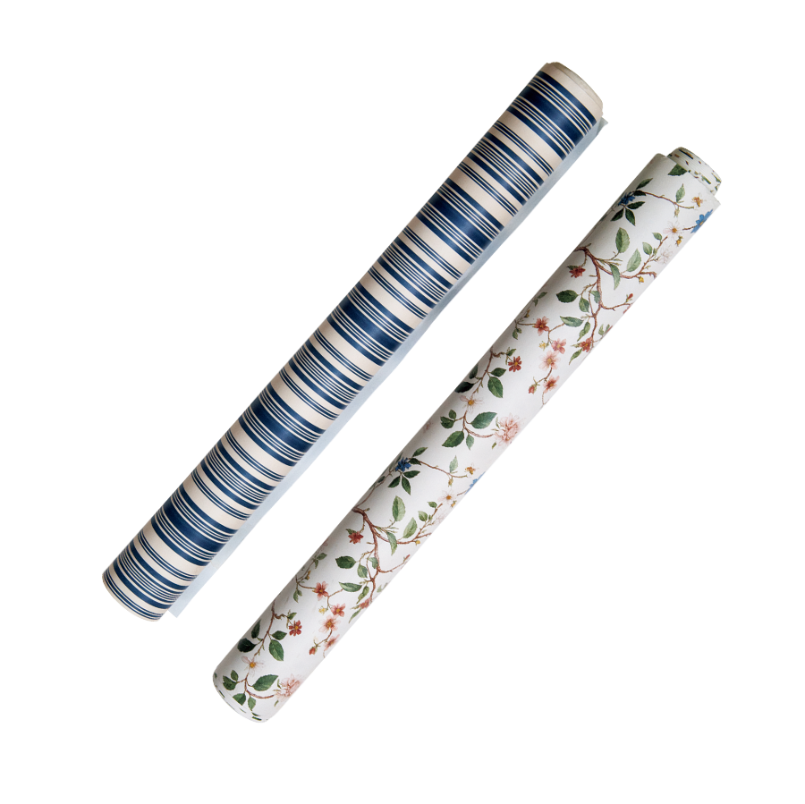 コーデリア・ドゥ・カステラーヌが図柄を考案した壁紙。花模様とストライプ柄。