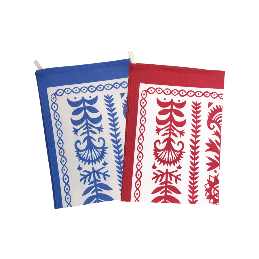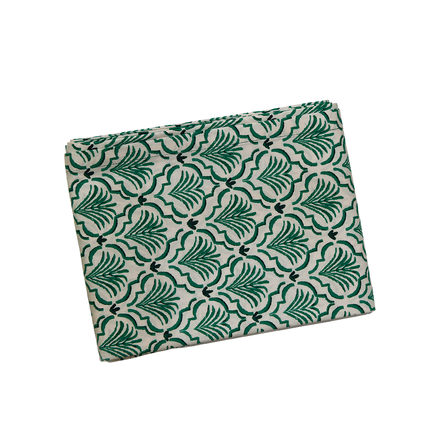 「Gloria」と名付けた植物図案を、ジオメトリックにデザイン。気軽に使えるコットン素材。