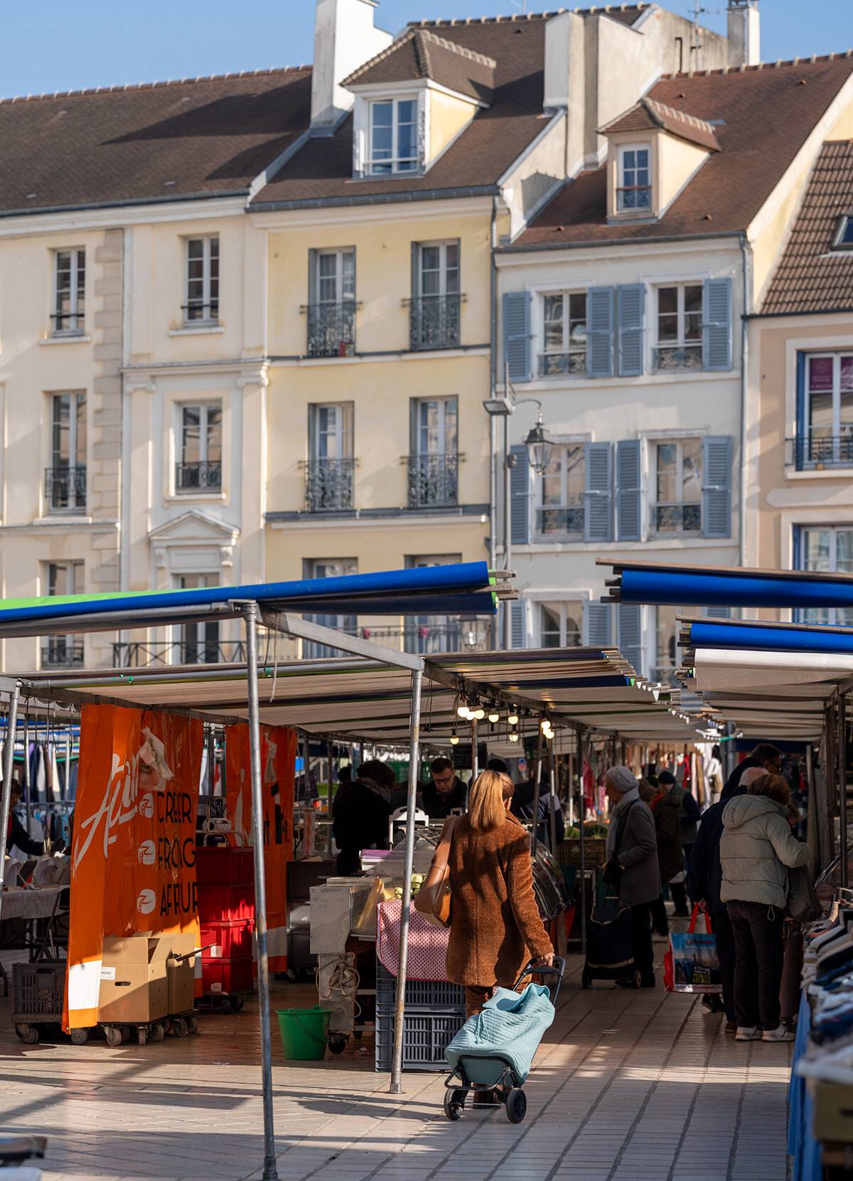 12世紀から発展した旧市街は、サンジェルマン教会の裏側に広がる。王城のお膝元でありながら、この町にはヴェルサイユのような気取りがない。18世紀の建物に囲まれたマルシェ・ヌフ広場に出る週3回の市場を中心に、飲食店や商店が軒を連ねる旧市街には市民の日常の暮らしが息づいている。