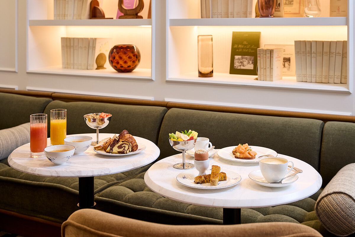 ホテルゆえフロントがあるけれどとても控えめに設けられているので、地上階は外から見るとまるでカフェかレストランといった様相を呈している。ここが朝食の場であり、またランチもディナーも取れるレストラン。バーは12時から22時まで毎日営業していて、またこの時間帯はティータイムを楽しむこともできるのだ。バーではグラスワインもあれば、カクテル、そしてノンアルコールカクテルのモクテルも。日本から比べると遅いけれど近頃のパリはコラーゲンが注目されていて、このモクテルにはAroma Zoneという自然派コスメティック・ブランドの粉末コラーゲンをプラス(2ユーロ)して飲めるというおまけも。
