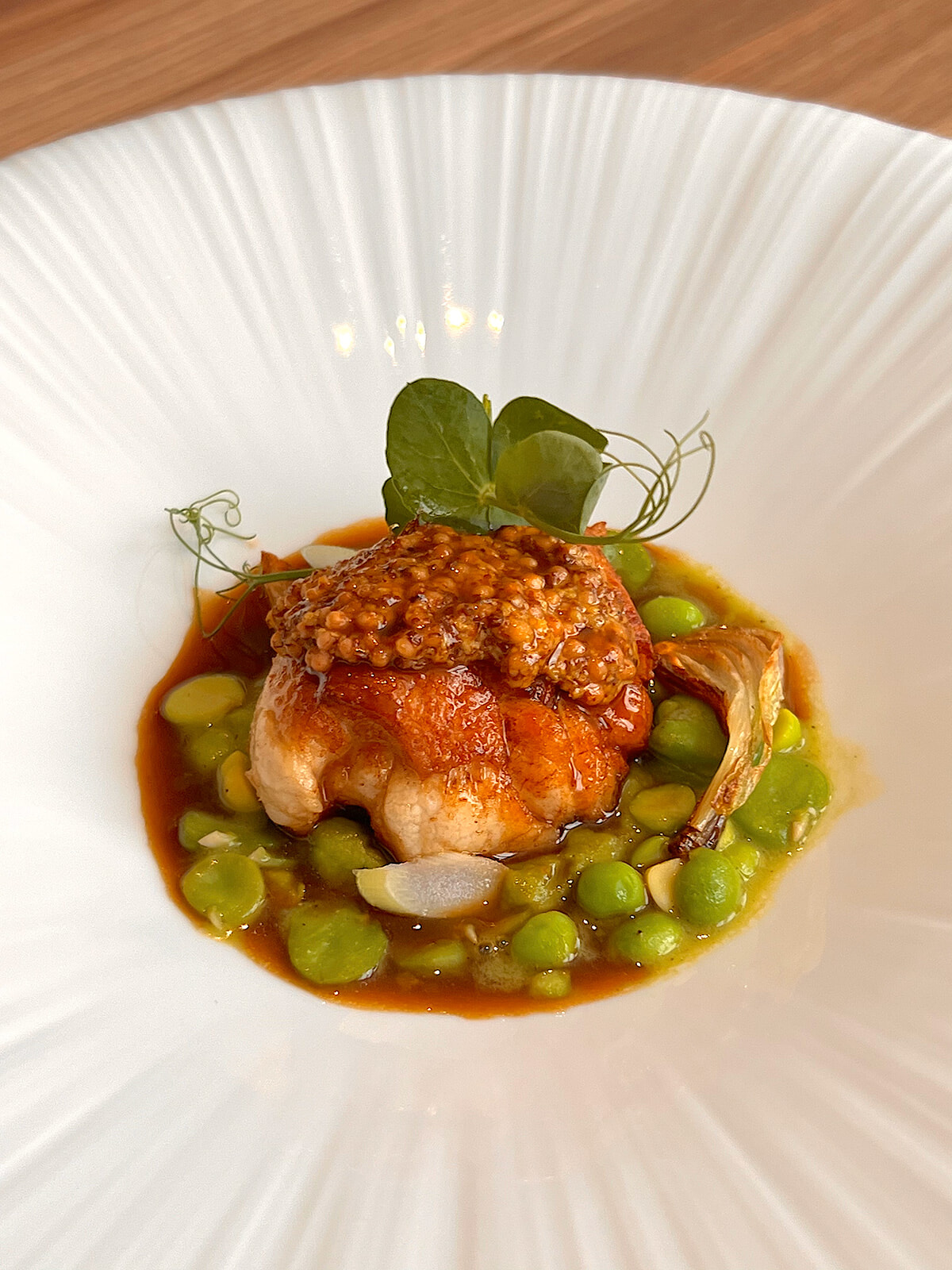 下準備に手間をかけ、モーのマスタードの酸味でリ・ド・ヴォーが苦手の人もうならせる味にシェフは仕上げている。photography: Mariko Omura