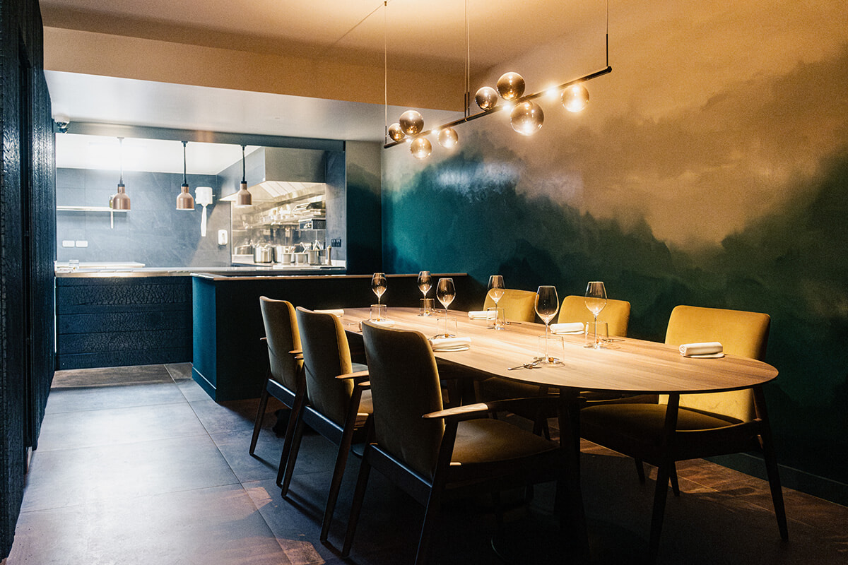 オープンキッチンとシェフズテーブル。photography: Florian Domergue – Pausecom