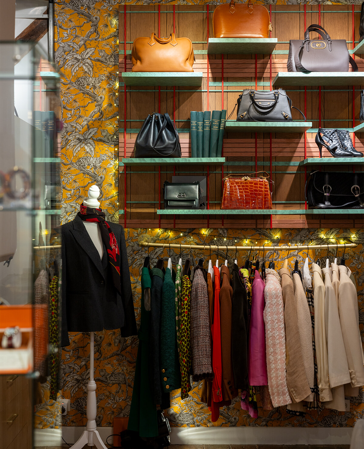 ヴィンテージモードのエキスパート、ステファニー・マルコヴィックが2021年にオープンした店。1980、90年代を中心に、50年代以降のセカンドハンドを扱う店内には、状態のいいフランスやイタリアのハイブランドピースがずらり。ブルジョアジーの街だけに、ジャケットやドレスなどの上品なアイテムが揃っている。バッグや靴、アクセサリーも豊富で、なかなか見つからないアイコニックなモデルと出合える可能性大。カール・ラガーフェルドなどクチュリエのデザイン画やファッションイラストも取り扱っている店だけに、モードを愛する人ならぜひ覗きたいアドレスだ。