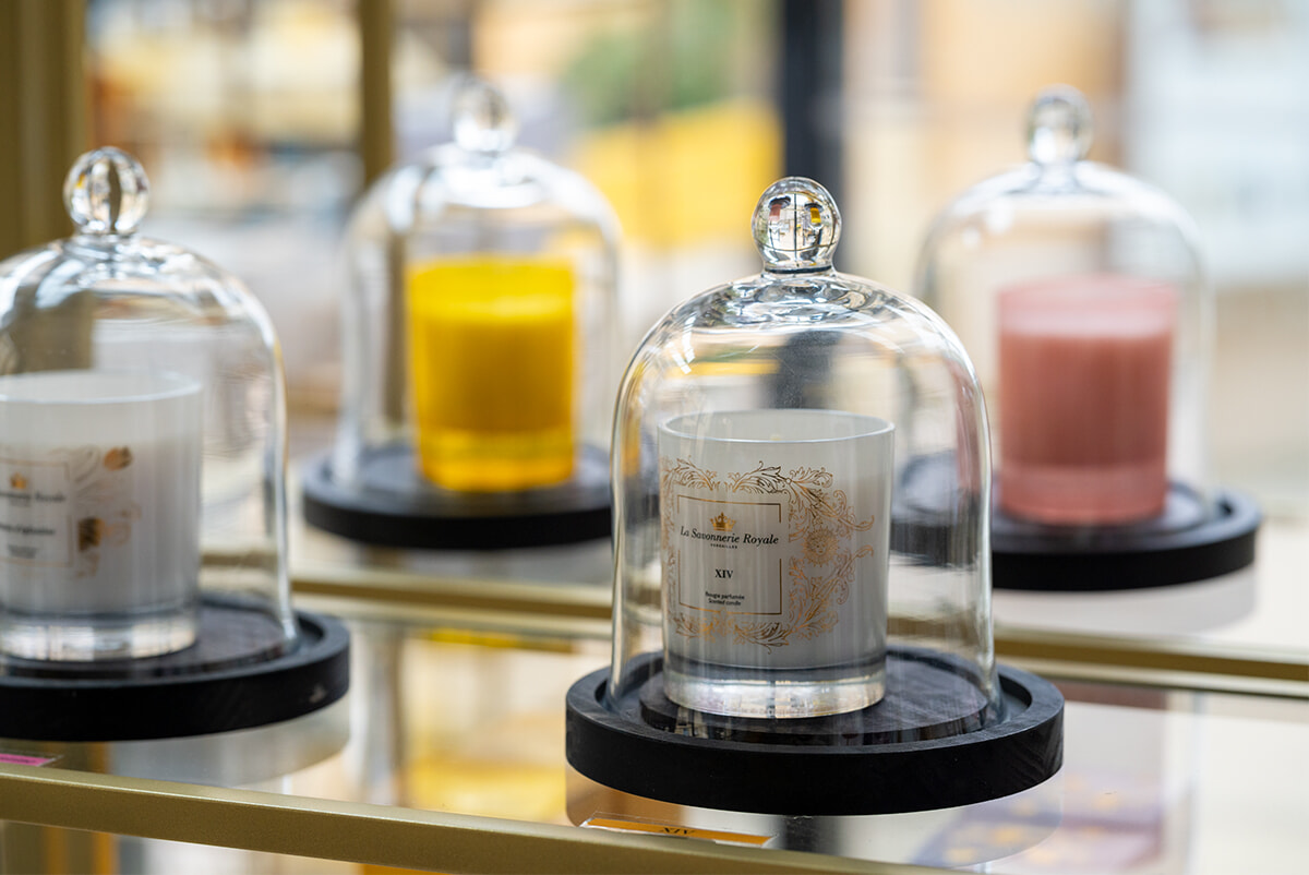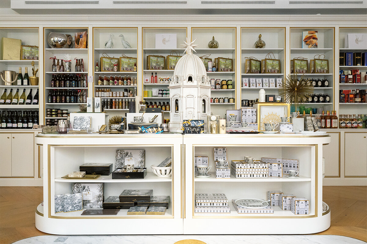 ヴェルサイユにゆかりの品をセレクトし、オリジナルアイテムも発信するショップがここ。地元が発祥のトワル・ドゥ・ジュイで、シーズンごとに色を変えるクッションやバッグが人気。フランス最優秀職人が作るオリジナルのコンフィチュール、ヴェルサイユ生まれのブランド、ラ・サヴォヌリ・ロワイヤルのソープやキャンドルなど、フランスのエレガンスを感じさせるクオリティの高い品ばかり。お茶やハチミツから、香水、パジャマまで、品揃えも幅広くお土産選びにもぴったりの店だ。
